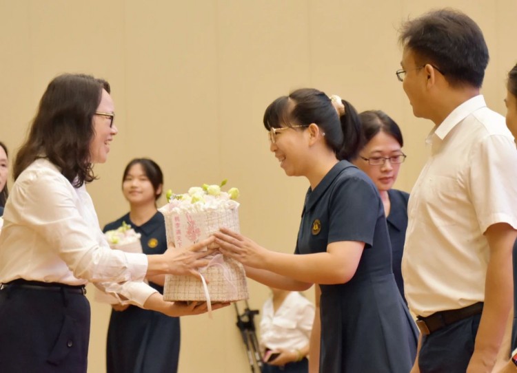 陈春丽校长发表教师节贺词。向每一位教师致以最诚挚的节日问候,感谢每一位在教育教学工作中辛勤付出和无私奉献的教师。回顾过去的一年,学校突出构建和实践高质量发展体系的主题,在教育教学、科学管理、招生送生、环境提升等方面取得了显著的成果。面对新的挑战,陈校长希望全体教师践行“责任与荣誉”的校训,弘扬教育家精神,争做有理想信念、有道德情操、有扎实学识、有仁爱之心的“四有”好老师,做好学生的“引路人”,同心同德,深耕细作,携手把英华学校建设成一所学生乐学、群众满意、社会认可的好学校!