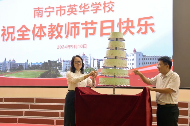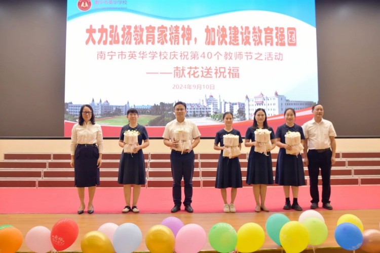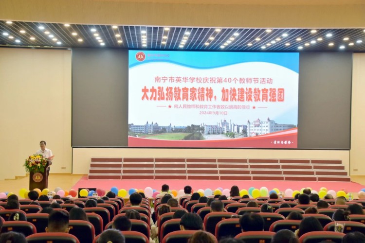 9月10日,南宁市英华学校全体教师齐聚报告厅,举行庆祝第40个教师节活动,活动由许文锋副校长主持。