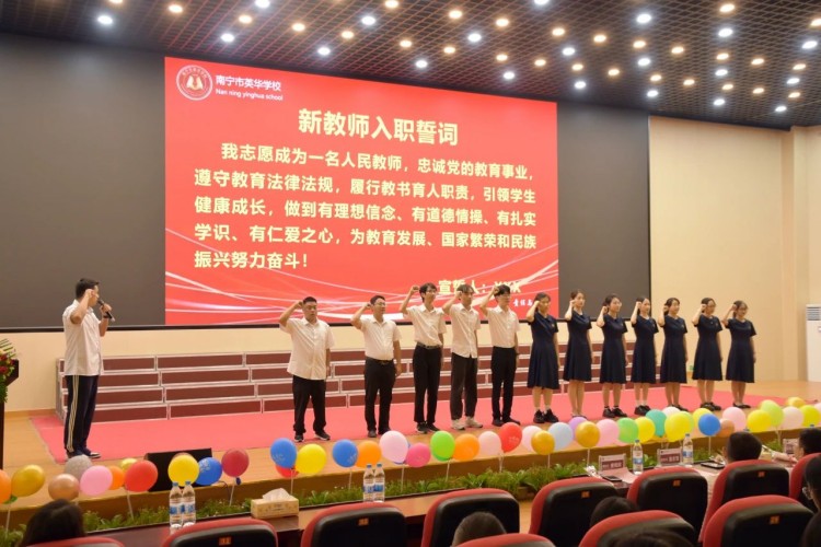 铮铮誓言铭忠心,字字铿锵担使命。在卢冠宇老师的带领下,全体新入职老师共同宣誓,展现新入职教师投身教育的决心与信心。