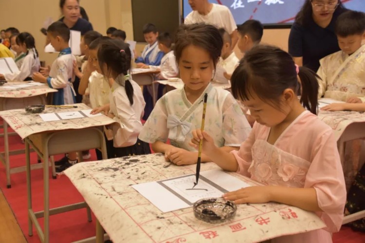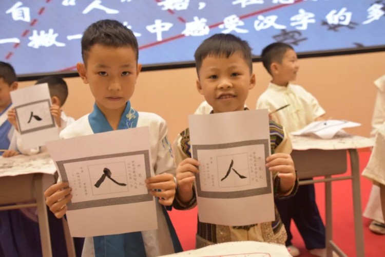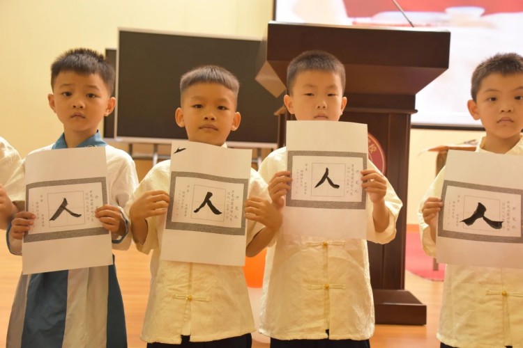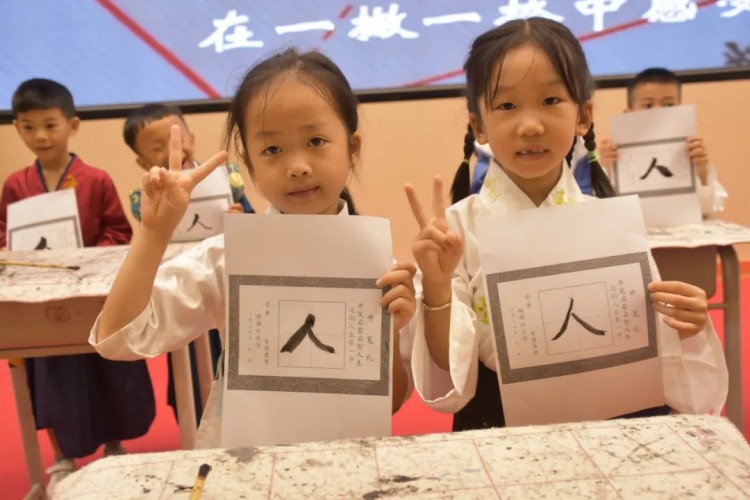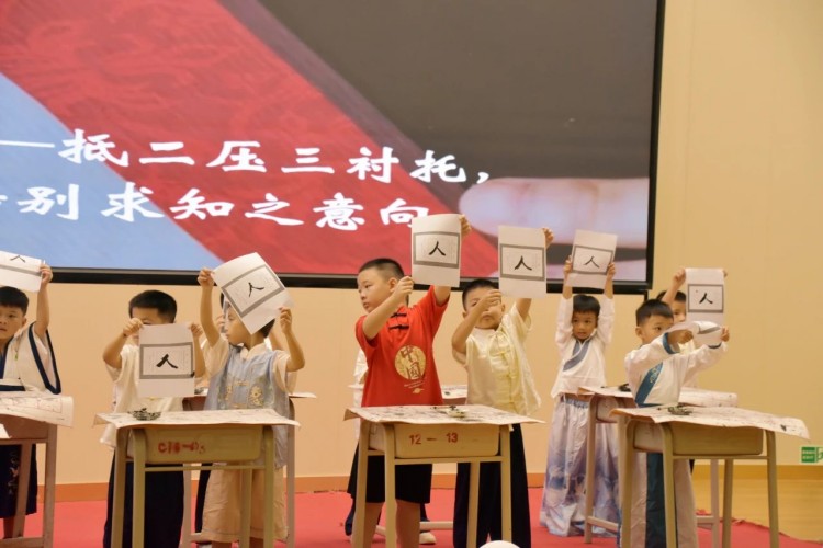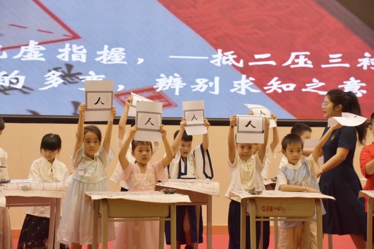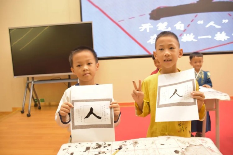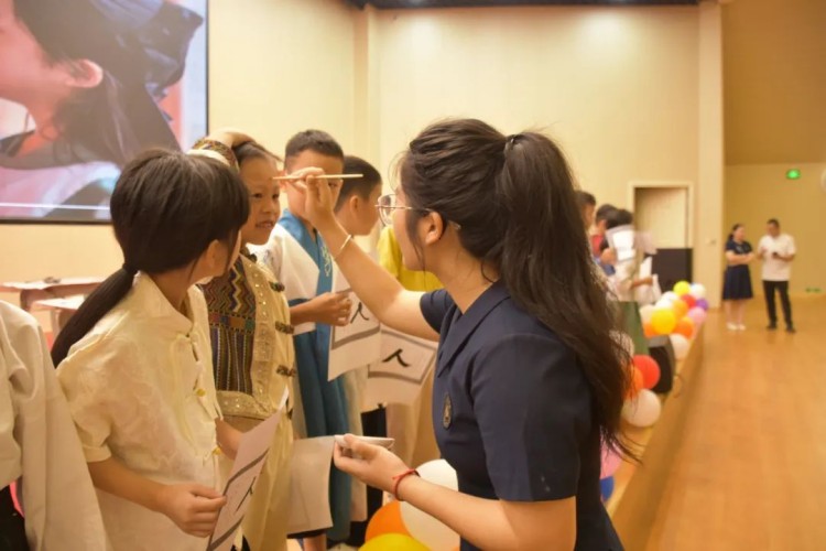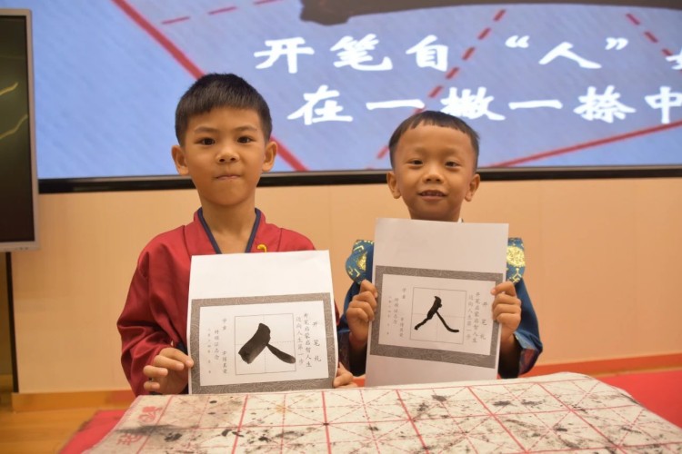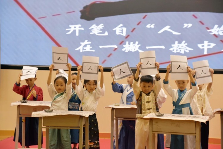 开笔写“人”,启航人生。人生聪明识字始,识字写字是学习文化的第一步。在开笔写“人”的环节中,小学部石盛平副主任带领一年级新生共同书写“人”字。这一仪式寓意着在启蒙阶段,学会做人是最为重要的。一撇一捺,顶天立地,一年级新生纷纷举起他们的“人”字,彼此见证。这不仅是一个字的书写,更是他们人生启航的标志。