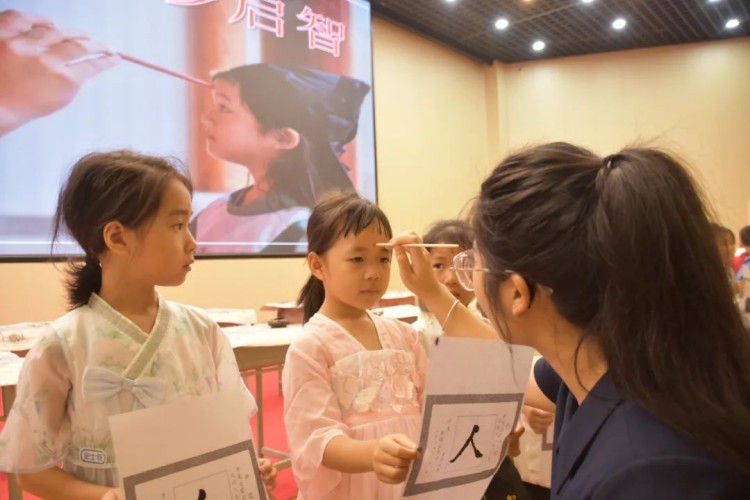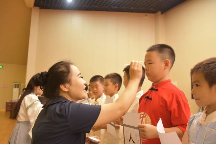 朱砂启智,寄托期望。教师把朱砂轻点在新生额头,如同把智慧的种子,播撒在心田,等待着在未来的日子里生根发芽、茁壮成长。