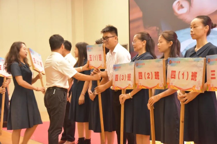 班牌传递,责任延续。班牌作为班级的象征,承载着班级的荣耀与梦想,寄托着同学们希望与期待。在新班级授牌仪式中,原班主任将班牌交到新班主任手中,这不仅是一个物品的传递,更是一份责任的交接与使命的传递。