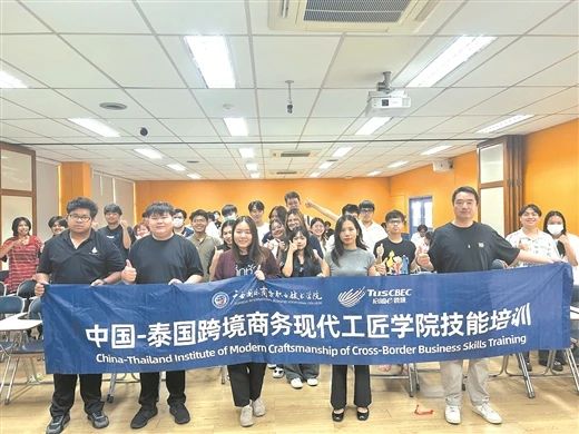 回顾:2024年,自治区教育厅统筹下达营养膳食补助资金35.46亿元,对全区约426万农村义务教育学生提供营养膳食补助,其中新增实施营养改善计划扩面县的受益学生约263.5万人,教育厅安排4.5亿元专项资金,支持50个新增实施营养改善计划扩面县改扩建学校食堂。来宾市兴宾区凤凰镇中心小学校长欧文友:广西实施营养改善计划全覆盖,为学生和家长带来福祉,有利于学生健康成长,也解决了农村家长有关孩子“吃什么,怎么吃”的难题。实施以来,家长们对政策拍手称赞,反响热烈,也为构建和谐校园、平安校园起到很大促进作用。平日里,看着学生吃得好、吃得香,看到家长们更支持学校工作,我倍感欣慰。中国—泰国跨境商务现代工匠学院技能培训现场。(广西国际商务职业技术学院供图)