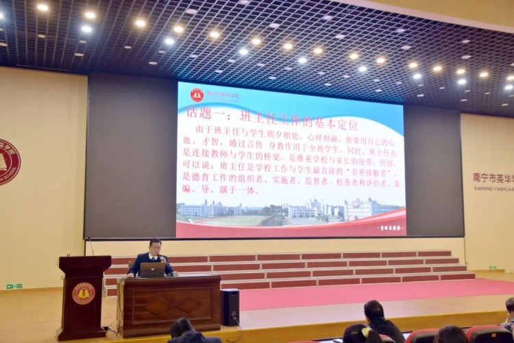 谢相欣副校长从班主任工作的基本定位、班主任工作的基本要求与规范、班主任工作感受等方面对班主任工作进行了详细和实用的指导。谢副校长强调,班主任是学校教育教学工作的中坚力量,肩负着学生成长成才的重要使命。班主任不仅要关注学生的学习成绩,也要注重学生的全面发展,尤其是心理健康和品德培养,要做到严而有爱,用耐心和细心去打开每一个学生的心门。谢副校长结合具体案例,分享了如何通过科学的管理方法和有效的沟通技巧,构建和谐的班级氛围,激发学生的学习动力。