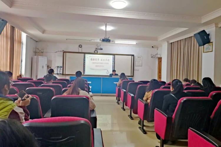 会上,陈春丽校长解读了2025年春季学期学校工作计划,提出了任务要求。陈校长紧紧围绕创建优质民办学校“八大目标任务”,从发挥党建引领作用,为师德铸魂;强化教师队伍建设,为强师赋能;科研引领,走向高效;精研课堂管理模式,为强课提质;夯实日常精细管理,为增效助力;积极开展多种校园活动,用“责任与荣誉”正向激励学生成长;抓实抓细安全管理工作,以“安全与健康”护航学校健康发展;加强家校共育,家校协力助力孩子成长;创新保生招生工作,有学生才能有发展;强化后勤工作,以微笑服务师生等十个方面详细部署新学期各项工作。