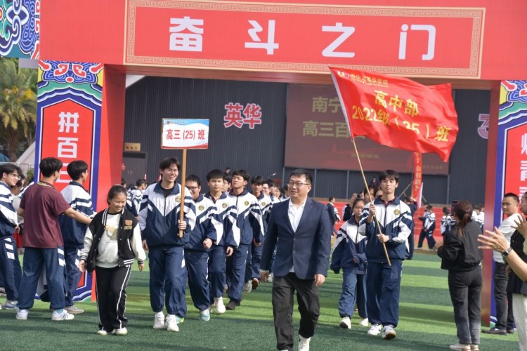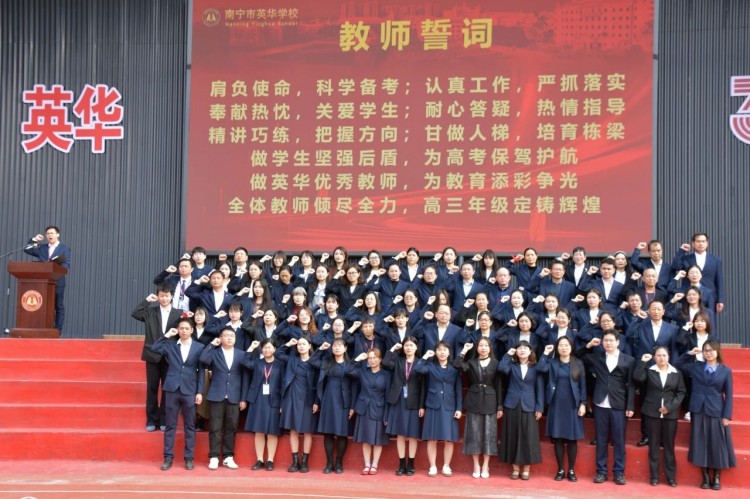 2025年3月1日,南宁市英华学校足球场上旌旗招展、誓言震天,2025届高三年级高考百日誓师大会在此盛大启幕。陈春丽校长、蒲庆双副校长、谢相欣副校长等校领导、全体高三师生及家长代表齐聚一堂,以昂扬之姿、铿锵之声,共同吹响冲刺高考的冲锋号角。