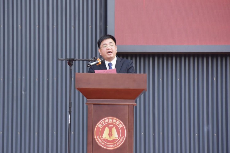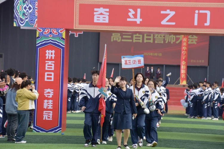 上午9时,在雄壮的国歌声中,五星红旗冉冉升起,百日誓师大会正式拉开帷幕。蒲庆双副校长以“百日冲刺,决胜高考”为主题发表开场致辞。他深情寄语学子:“百日虽短,但足以改写人生轨迹;今日之誓,必成明日之荣光!愿你们以‘黄沙百战穿金甲’的勇气,以‘不破楼兰终不还’的决心,在最后征程中全力以赴,书写英华新辉煌!”