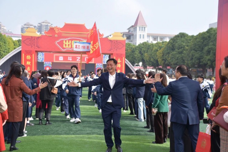 出征门:科任教师列队击掌,声声“加油”如战鼓擂动;