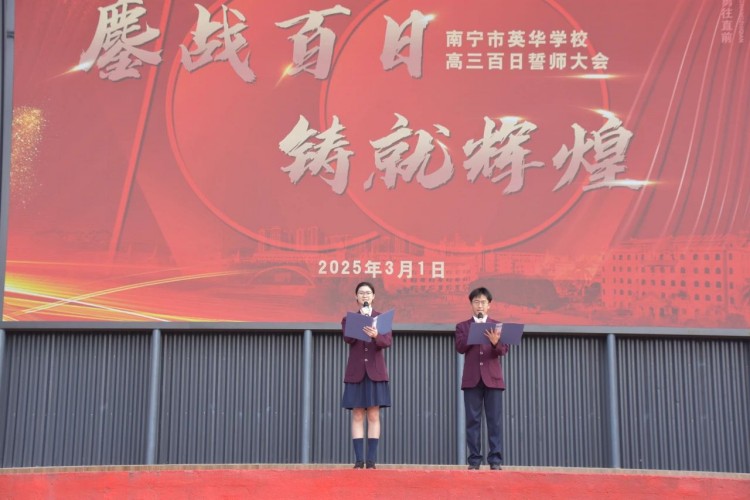 南宁市英华学校2025届高三百日誓师大会在激情与温情中圆满落幕。这场大会不仅是一次斗志的鼓舞,更是一次信念的凝聚。全体高三师生将以此次誓师为号角,以“千磨万击还坚劲”的毅力、“越是艰险越向前”的魄力,在最后百天中奋楫扬帆、乘风破浪,誓创2025年高考新辉煌!