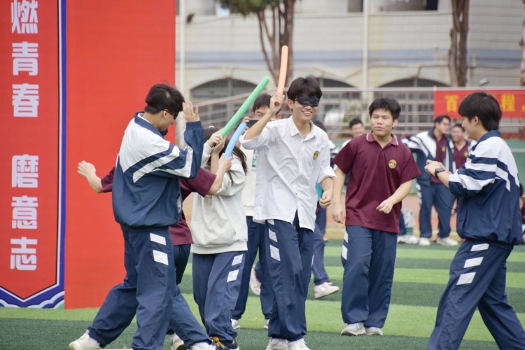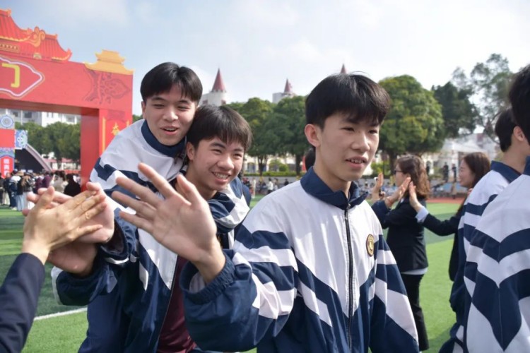 大会最后,各班开展团建活动,师生家长携手完成“同心圆”“梦想传递”等互动项目,欢声笑语中凝聚班级向心力。全体师生在足球场合影留念,镜头定格下的一张张笑脸,既是百日冲刺的起点,亦是青春奋斗的见证。