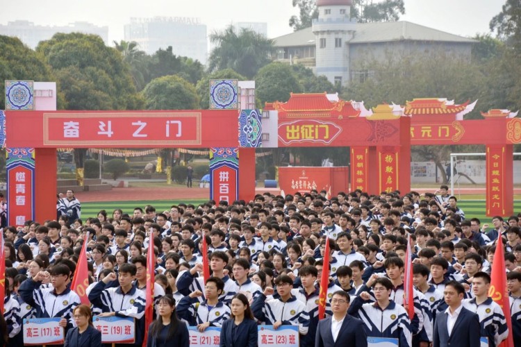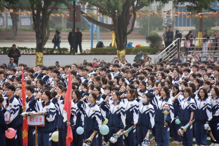“我以青春之名宣誓:百日鏖战,分秒必争;全力以赴,誓创辉煌!”在高三(1)班吴业主同学的领誓下,全体高三学子高举右拳,以震天誓言宣示必胜信念。教师团队紧随其后,由黄锐昌老师领誓:“恪尽职守,倾囊相授;甘为人梯,保驾护航!”誓言声回荡校园,激荡人心。