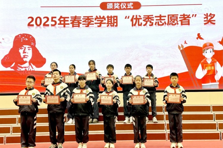活动现场还表彰了2024年广西“红领巾奖章”特色章“交通安全”章、2025年2月“文明班级”“文明宿舍”、寒假德育作业“优秀奖”及“优秀志愿者”等荣誉,以榜样力量激励师生向上向善。