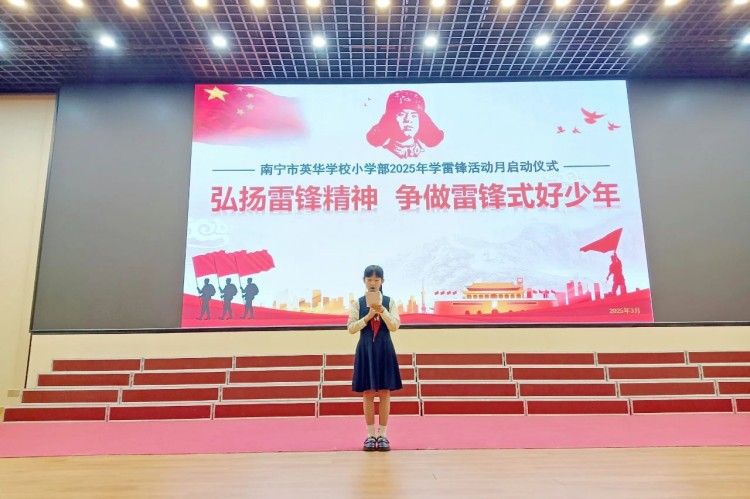 3月3日上午,英华学校小学部全体师生齐聚新报告厅,以庄严的升旗仪式拉开“学雷锋活动月”序幕。