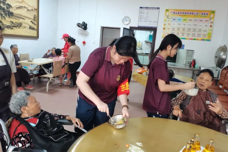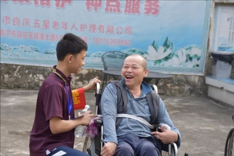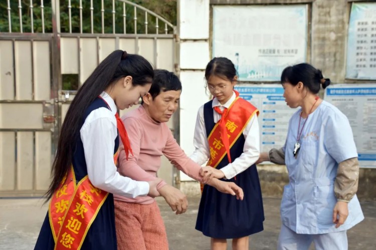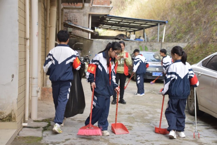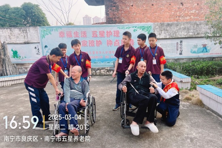 发言结束后,志愿者分为三组投入实践:环保组手持工具清理街道、楼道和花圃,为社区环境“换新装”;宣传组穿梭于街巷,分发垃圾分类、禁毒、交通安全及防诈骗手册,用稚嫩的声音传递文明理念;另一队志愿者则走进五星养老院,为老人捶背揉肩、讲述校园趣事,用暖心行动诠释“老吾老以及人之老”的传统美德。两小时的志愿服务中,孩子们以汗水浇灌责任,用微笑传递温暖,展现了新时代少年“追锋而行”的赤诚之心。