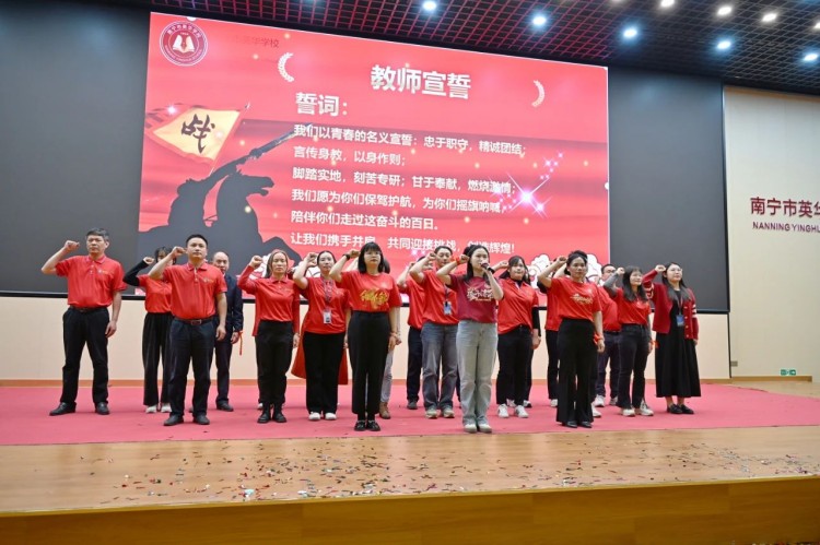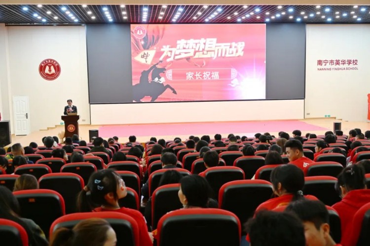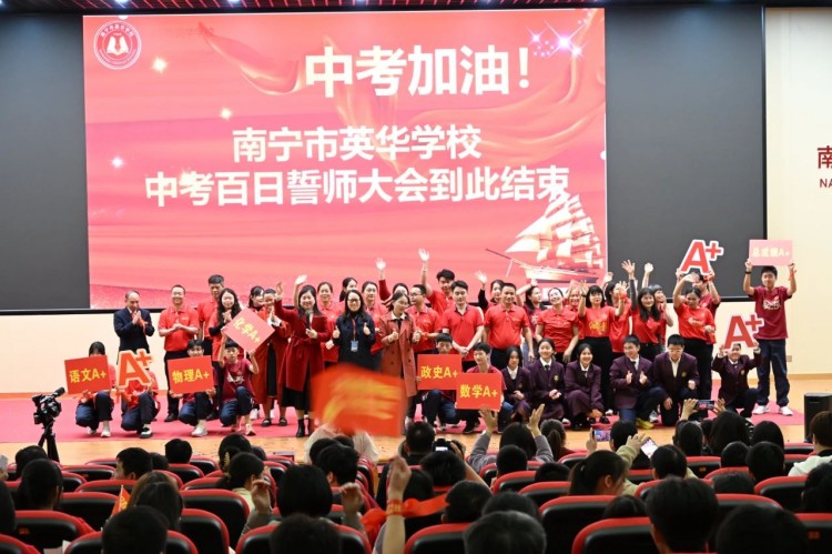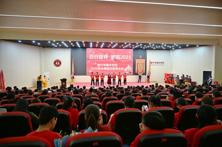 三月春晖暖,鹏翔壮志酬。2025 年 3 月 19 日上午,南宁市英华学校初中部被青春的热血与拼搏的激情所点燃,一场以 “百日誓师,梦圆 2025” 为主题的中考百日誓师大会盛大启幕。全体师生及九年级家长满怀热忱相聚于此,为中考冲刺擂响战鼓,奏响了一曲青春无畏、逐梦前行的激昂乐章。