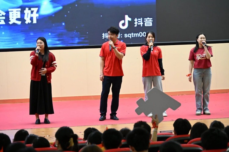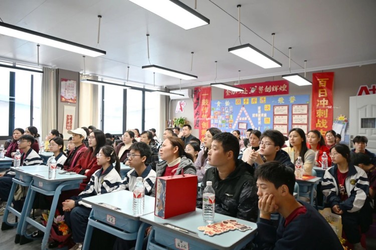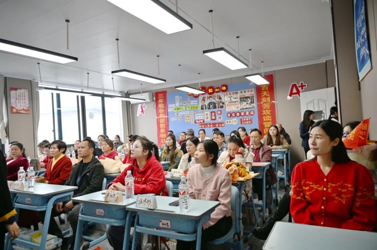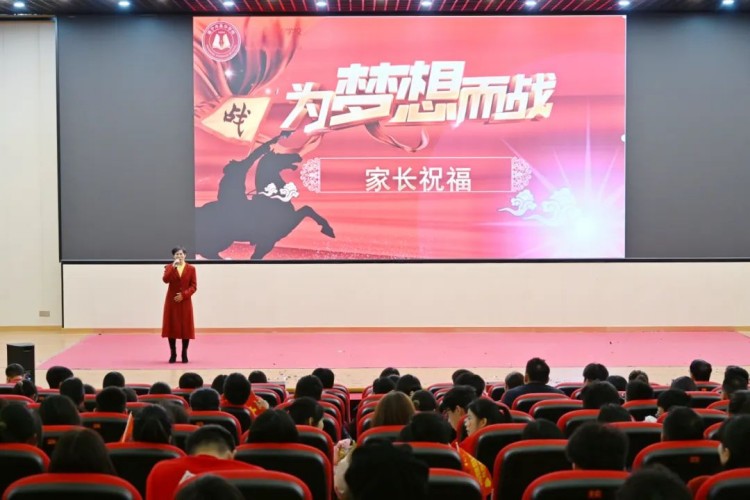 九年级的教师们别出心裁,巧妙运用学科术语,为学生们精心编织了一份份饱含深情的祝福。大屏幕上,来自家长们的爱意与期许汇聚成一条温暖的长河。他们以独特的方式,为孩子们的中考征程加油助威。各班家长用心录制的祝福视频里,每一句温柔的鼓励、每一声殷切的叮嘱,都如同轻柔的春风,悄然拂过孩子们的心田,给予他们无尽的勇气与力量。而优秀毕业生们精心准备的祝福视频,不仅传递着宝贵的成功经验,更满含着对学弟学妹们的深深期许。那字里行间的信心与鼓舞,宛如明亮的灯塔,为在学海中奋力前行的学子们照亮了前方的道路。