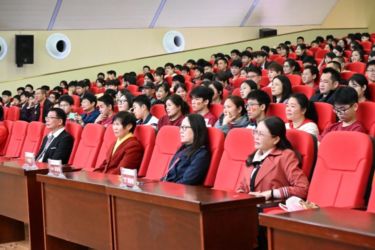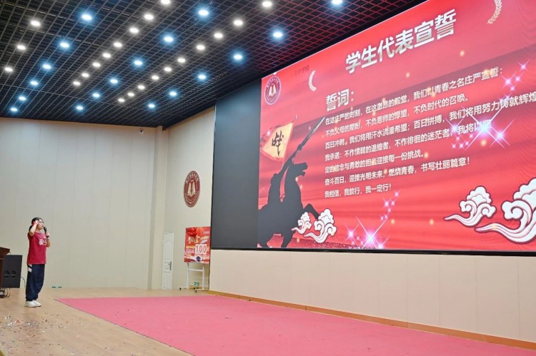 激昂的鼓点声如骤雨般密集敲响,每一声都仿佛敲在人心上,振奋着大家的精神。现场掌声阵阵,似春雷滚动,连绵不绝。一时间,祥瑞之气弥漫了整个厅堂,为即将迎来百日冲刺的学子们注入了磅礴的能量,激励着他们奋勇向前,追逐梦想。