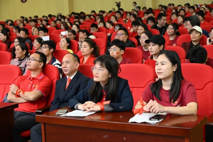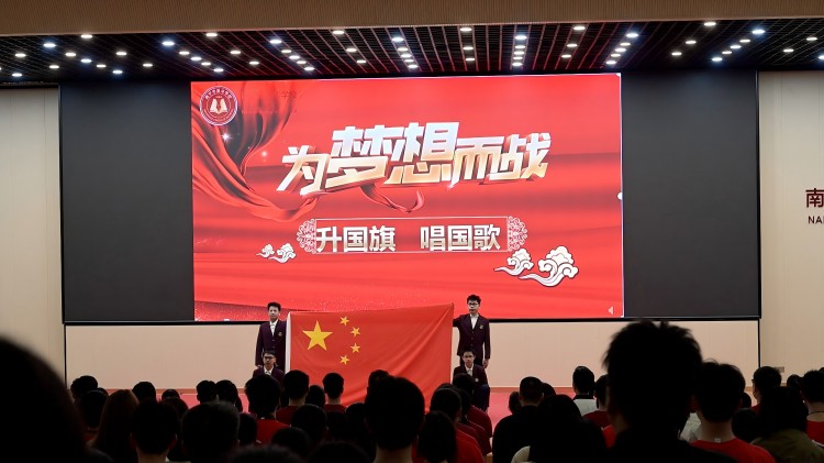 9时整,全体肃立。国歌奏响的刹那,会场全体人员目光如炬,歌声震彻穹顶:“起来!不愿做奴隶的人们!”这一刻,青春热血与家国情怀共振,学子胸膛中激荡的不仅是音符,更是“为中华崛起而读书”的铮铮誓言!