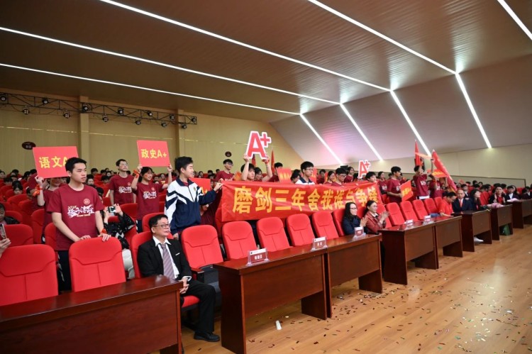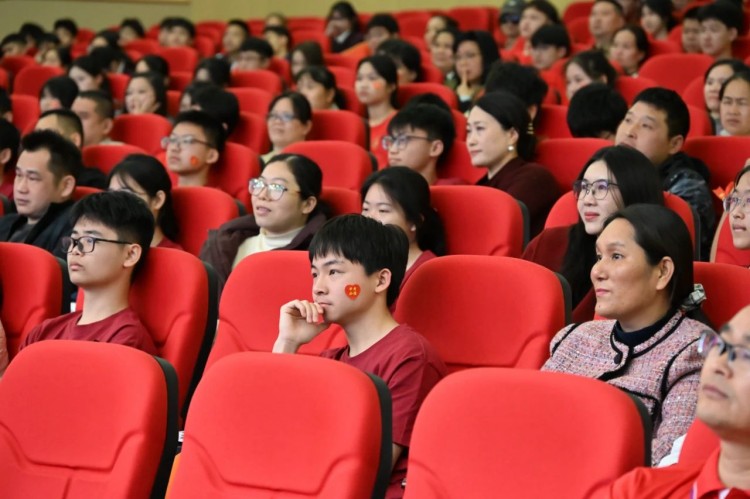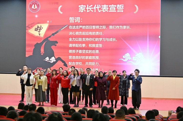 随后,教师、家长和学生代表分别宣誓。教师们誓言以敬业之心、奉献之情,为同学们保驾护航;家长们承诺做孩子最坚实的后盾,全力支持他们的学习与成长;学生们则以青春的名义庄严宣誓,他们的誓言掷地有声,如洪钟般响彻报告厅:不负父母的期盼,不负恩师的厚望,不负时代的召唤。