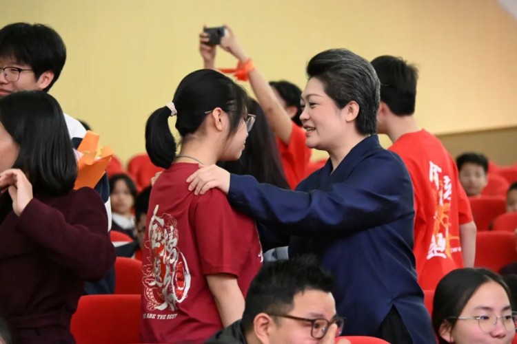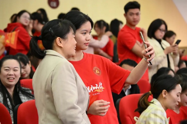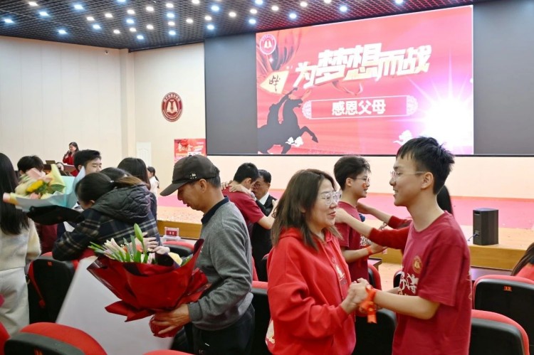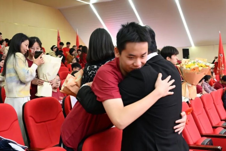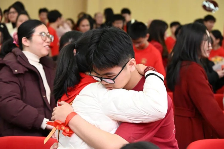 随后,学生们在座位旁转身面向自己的父母。那一刻,平日里深藏于心底的情感如决堤之水般倾泻而出。他们与父母深情对视,互诉衷肠,话语中饱含着对彼此的理解、关爱与鼓励。许多父母和孩子紧紧相拥,泪水夺眶而出,感动的氛围在空气中弥漫开来,场面温馨而又令人动容。