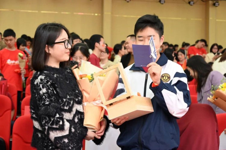 紧接着,学生们手捧鲜艳的鲜花,步伐轻快而庄重地走向老师。他们怀着深深的敬意,将鲜花敬献到老师手中,眼中满是感激与敬爱。这一束束鲜花,承载着学生们对老师辛勤付出的感恩之情,亦是对师生情谊的美好诠释。