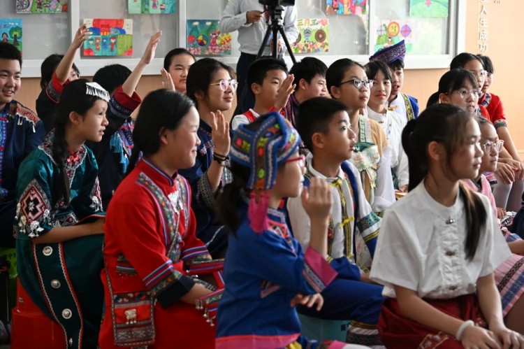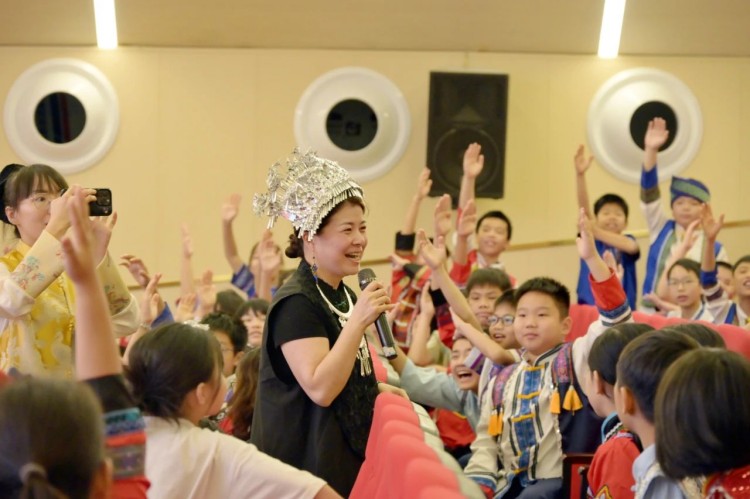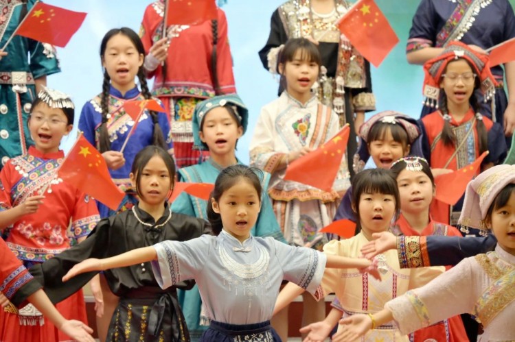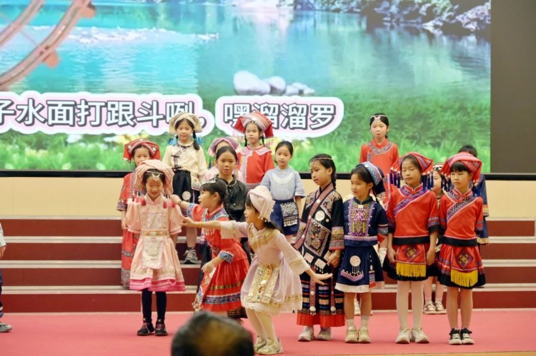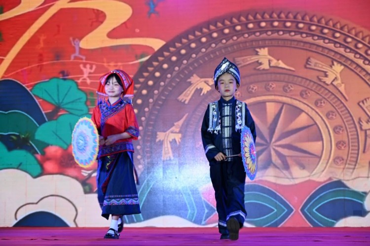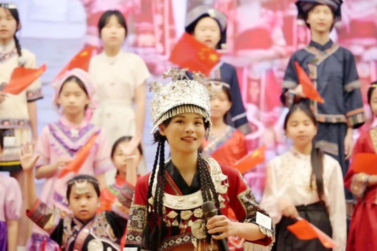 随后,是一场别开生面的民族服装秀。绣球图案的壮家服饰、银饰叮当的苗族盛装、蓝染布艺的侗族装扮...小小模特们、居民们自发加入合唱,老少同唱一首歌的场景,正是民族文化代代相传的生动写照。
