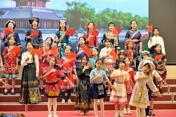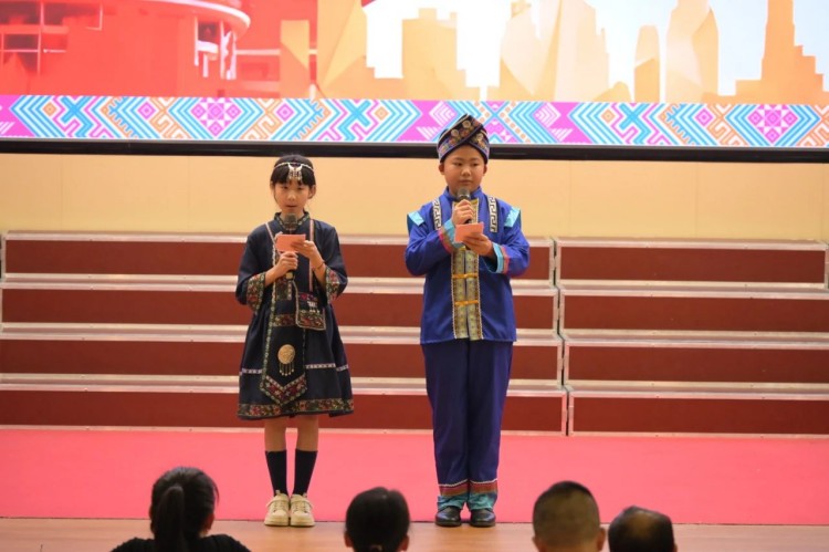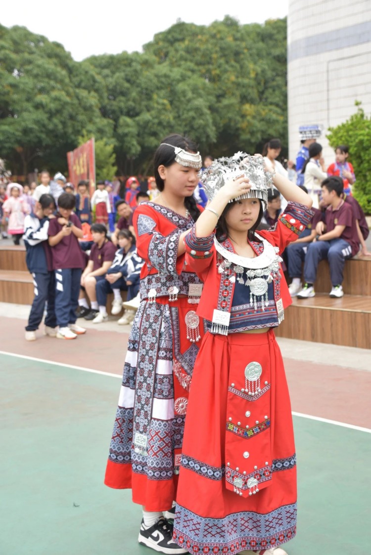 3月25日,小学部师生代表身着绚丽民族盛装走进石子塘社区。当壮锦纹样邂逅社区舞台,孩子们化身文化小使者,踏着《广西尼的呀》的旋律,将"最炫民族风"吹进社区每个角落。