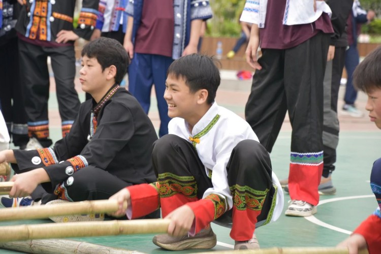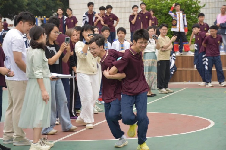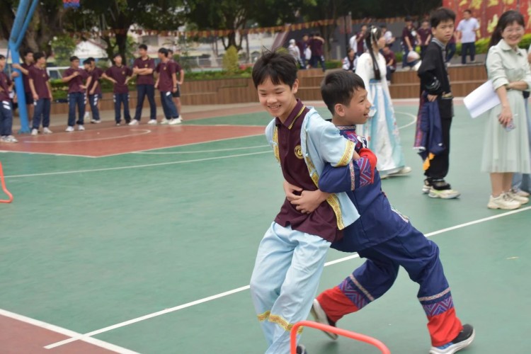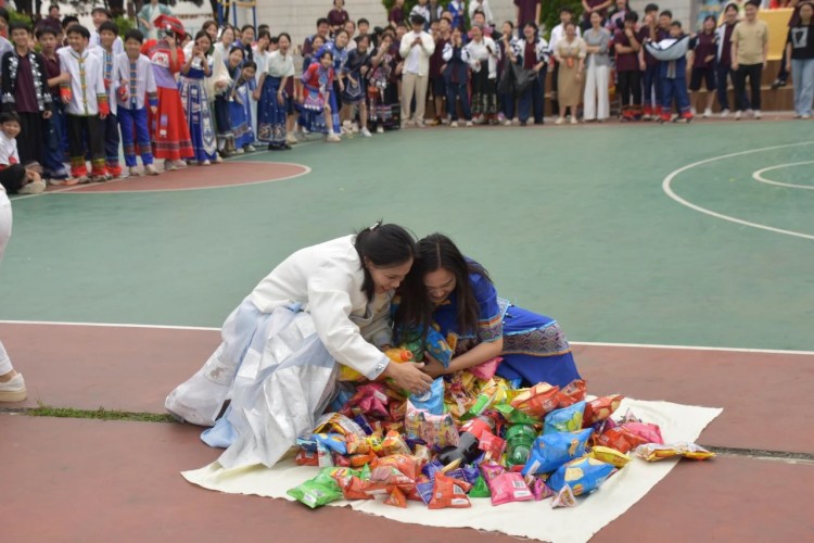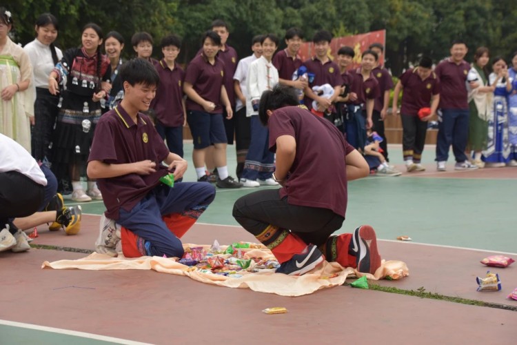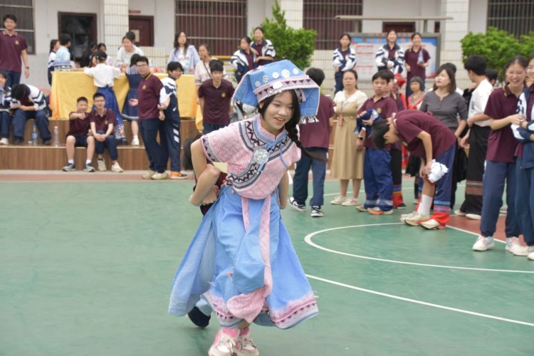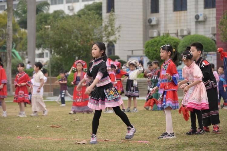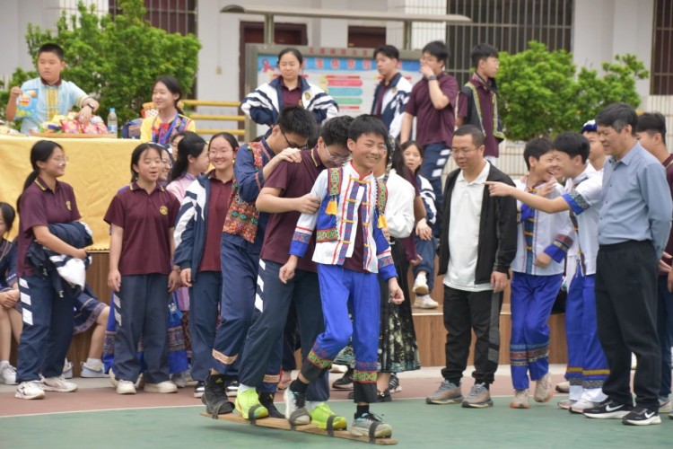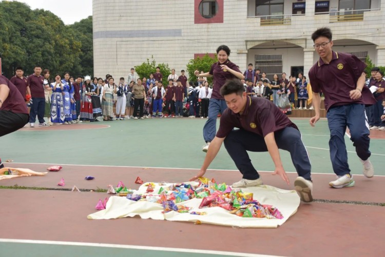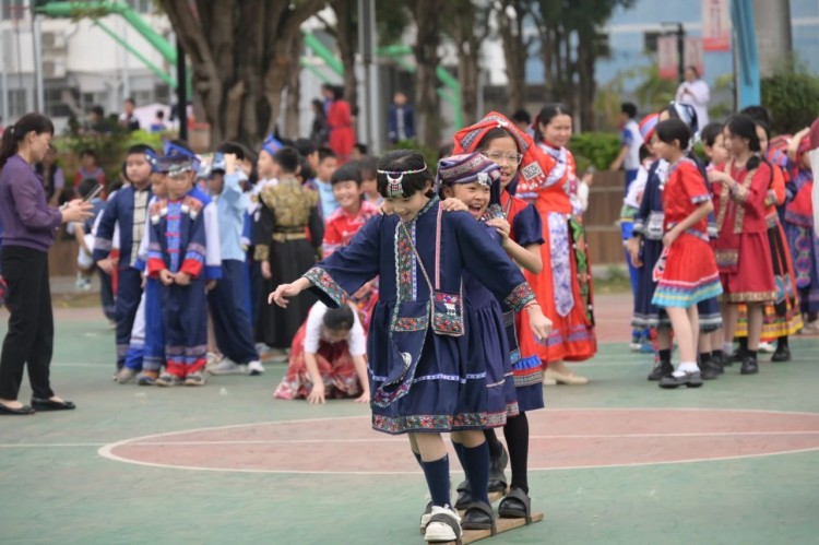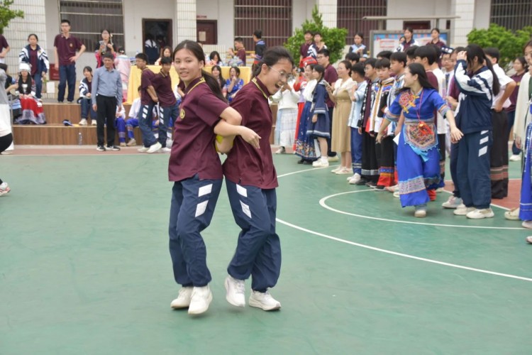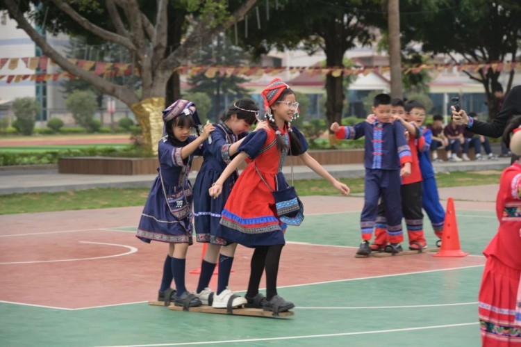 板鞋队伍竞速冲向终点,绣球在空中划出美丽弧度精准地投入背篓,伴随着竹竿敲打的咚咚声,师生们在快速开合的竹竿间轻盈地跳跃,多样的民俗体育运动让大家感受到不一样的民族风情。