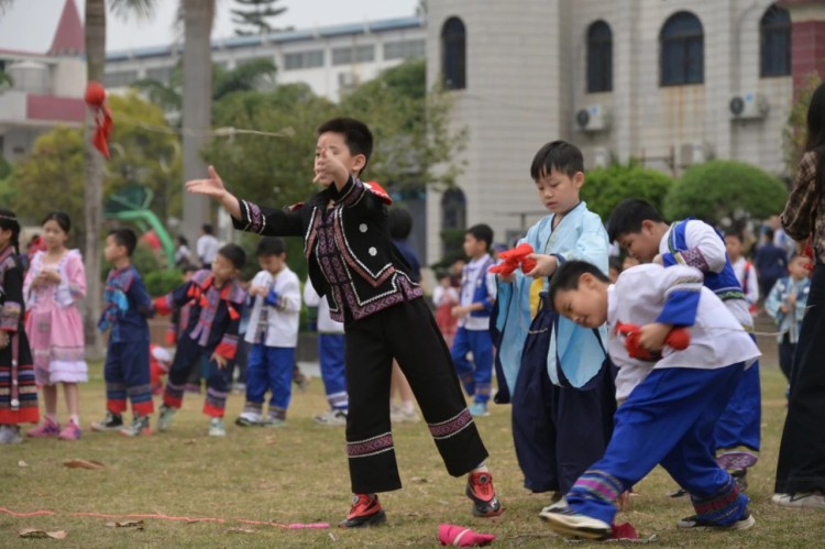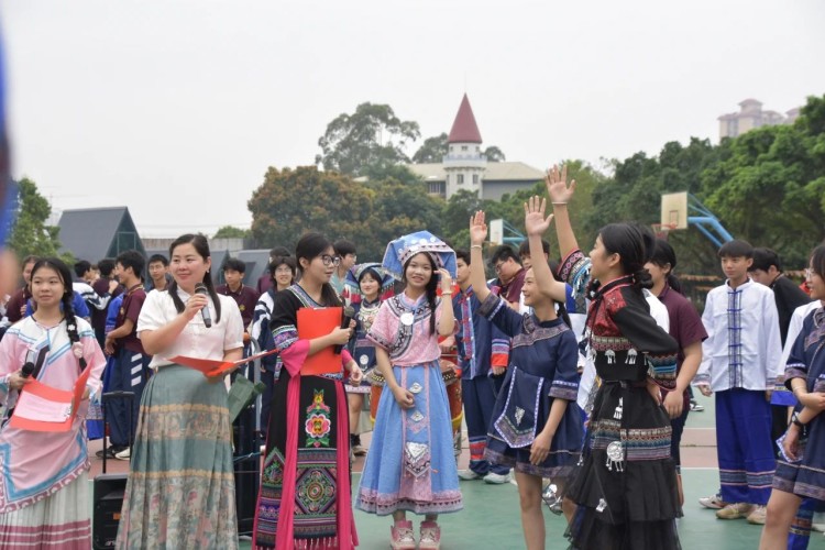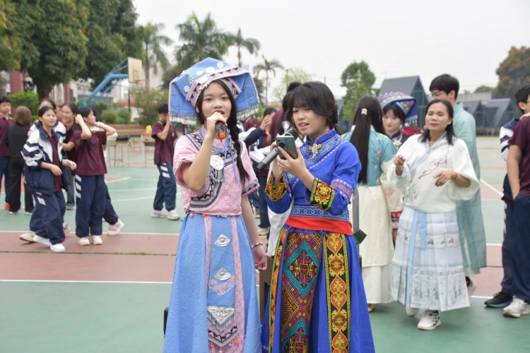 "尼的呀~尼的呀~"悠扬的歌声响彻校园,五彩绣球划出绚丽弧线。在这个春意盎然的时节,南宁市英华学校以"铸牢中华民族共同体意识"为主线,开展三月三民族文化传承系列活动。