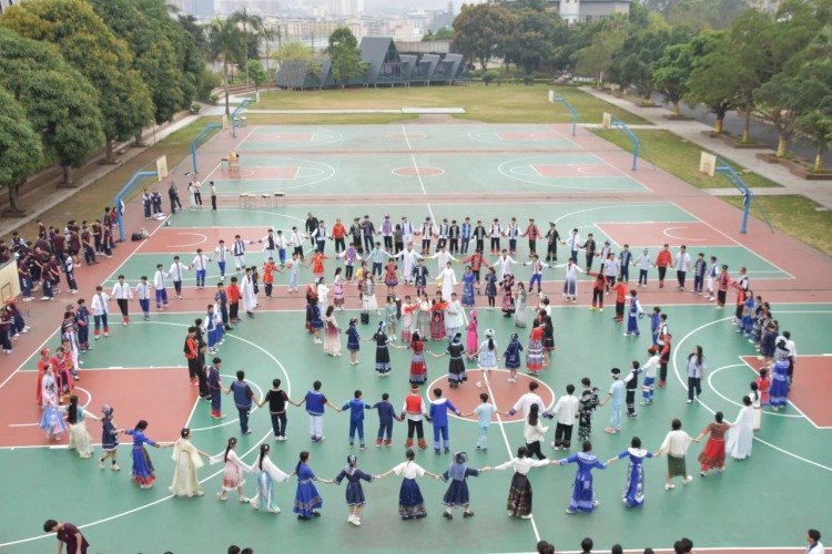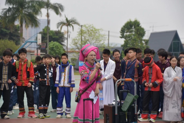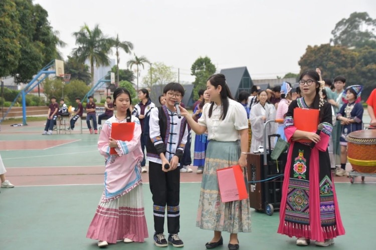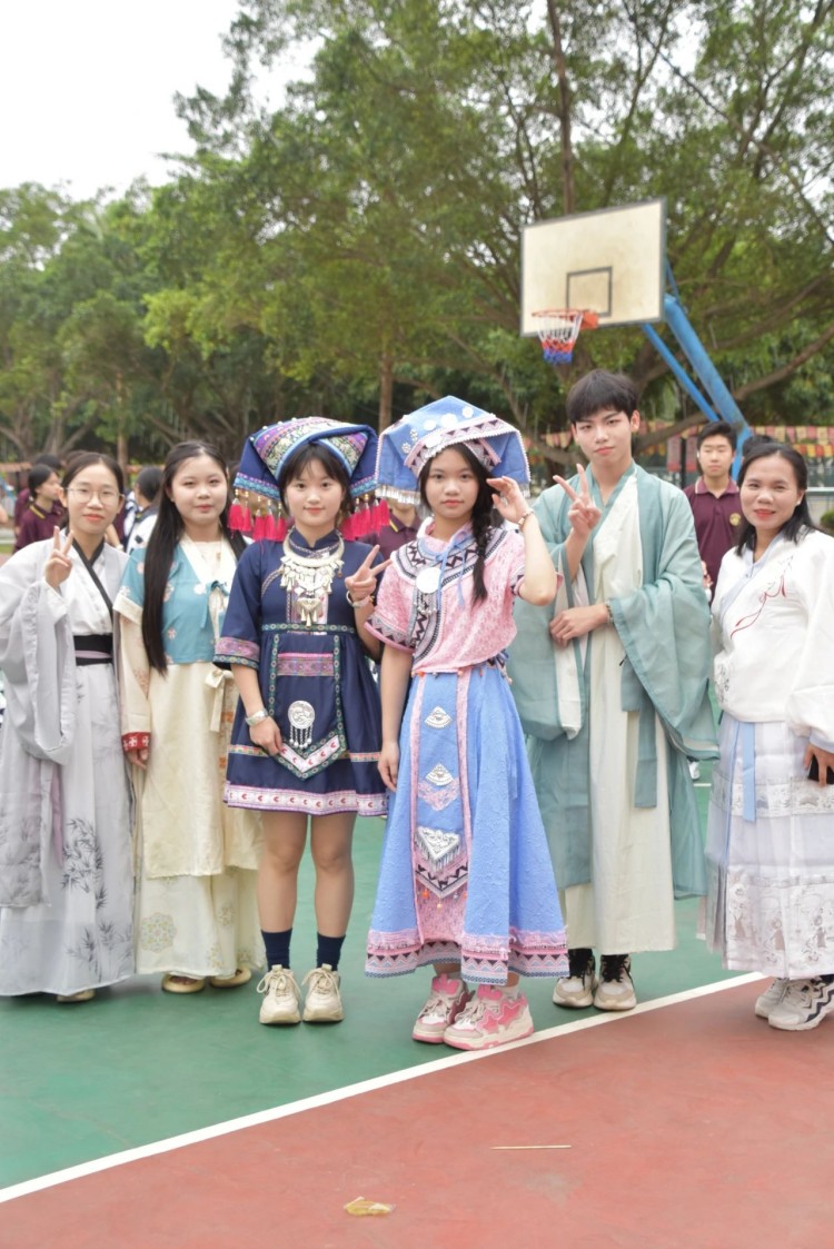 春意盎然,壮韵悠扬。3月28日上午,我校初中部师生身着各具特色的民族服装齐聚操场,唱响山歌,跳起圆圈舞,共同庆祝广西“壮族三月三”传统节日。