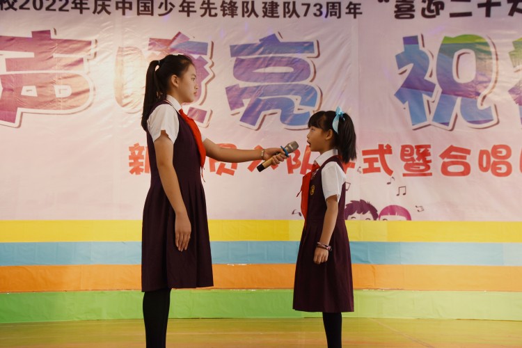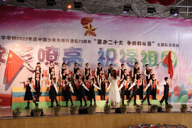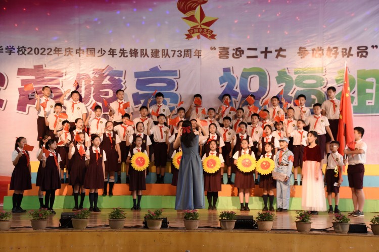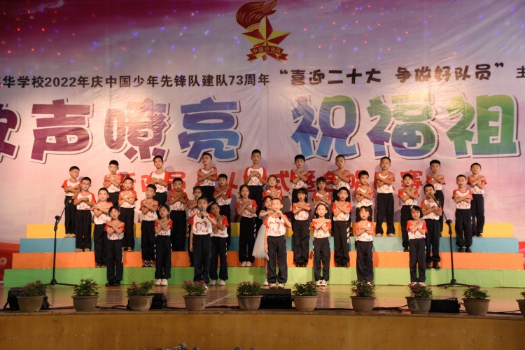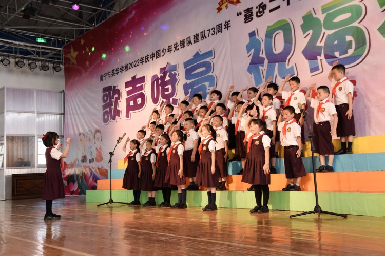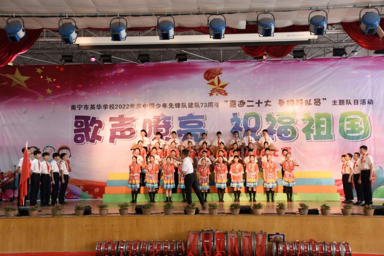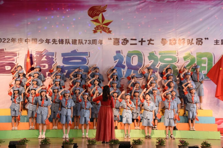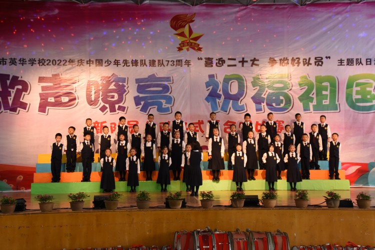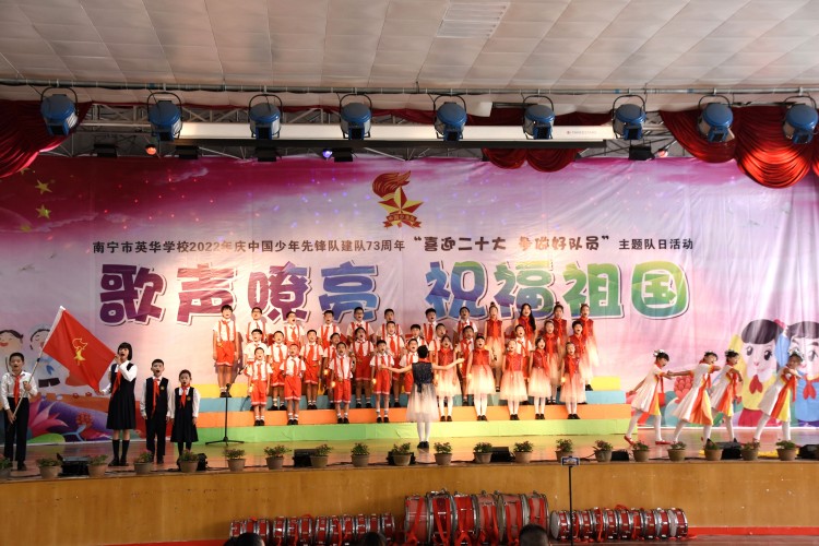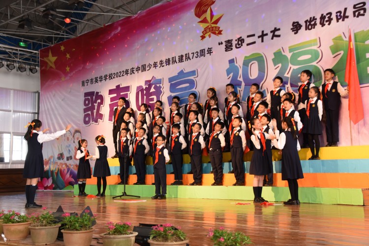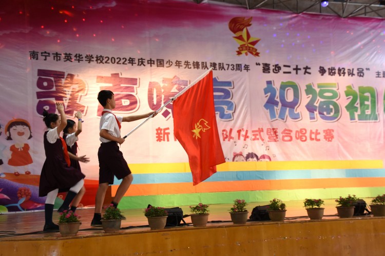 10月13日,中国少年先锋队迎来第73个建队日,南宁市英华学校小学部举行“喜迎二十大 争做好队员”主题队日活动新队员入队仪式暨合唱比赛。引领少先队员们紧握红色接力棒,在星星火炬的照耀下,争做新时代好队员,为红领巾增添光彩,以优异的成绩迎接党的二十大胜利召开。