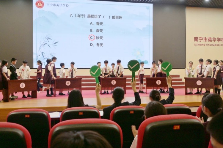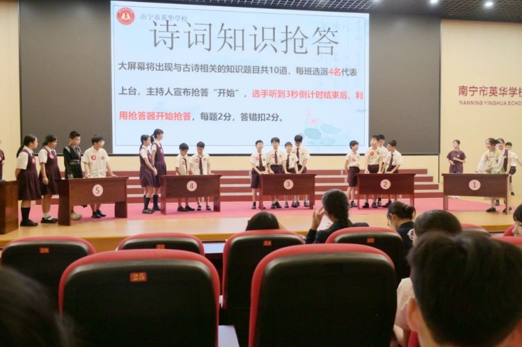 从“古诗中的传统节日”到“边塞诗代表人物”,题目涵盖文学常识、历史背景、诗词意象。抢答成功的班级需带领全班齐声背诵相关古诗,将个人智慧与集体力量完美结合。答对加分、答错扣分的规则让比赛悬念迭起,比分几度反转,家长们直呼“过瘾”!