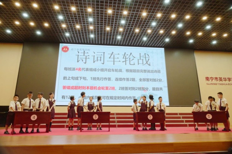 5月9日上午,南宁市英华学校的校园里,一场别开生面、充满诗意与激情的小学五年级诗词大会精彩上演!这里,诗词不再是课本上的文字,而是化作了同学们心中的星光,照亮了整个校园。