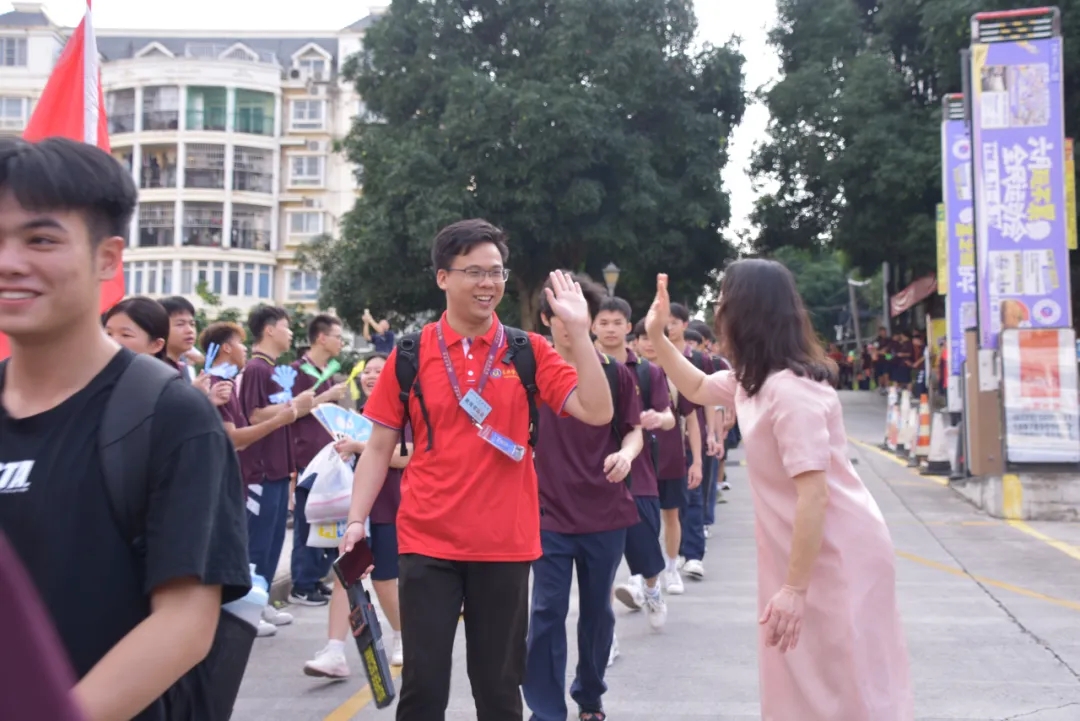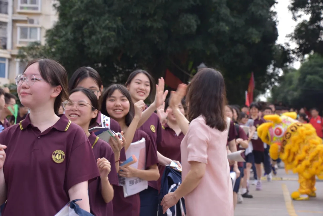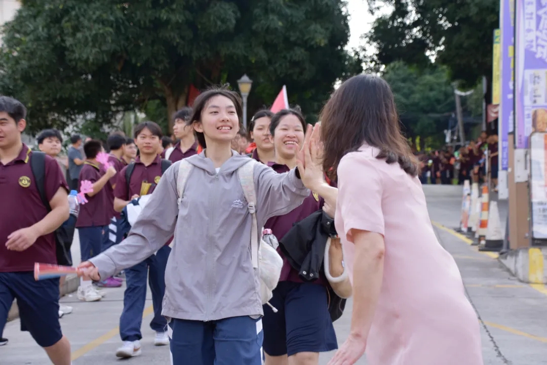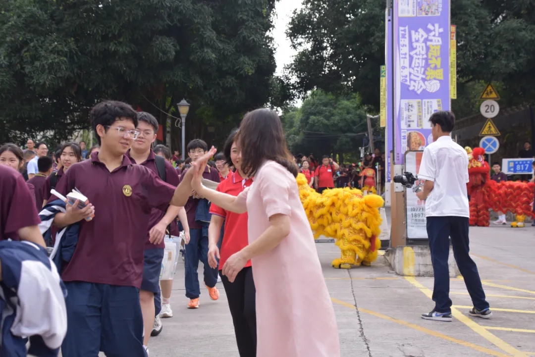 校领导、老师、家长在校道两侧与高三学子一一击掌,“加油!”“必胜!”“太棒了!”手掌相碰的瞬间,是信心的传递。这一刻,加油声、击掌声绘就了一幅