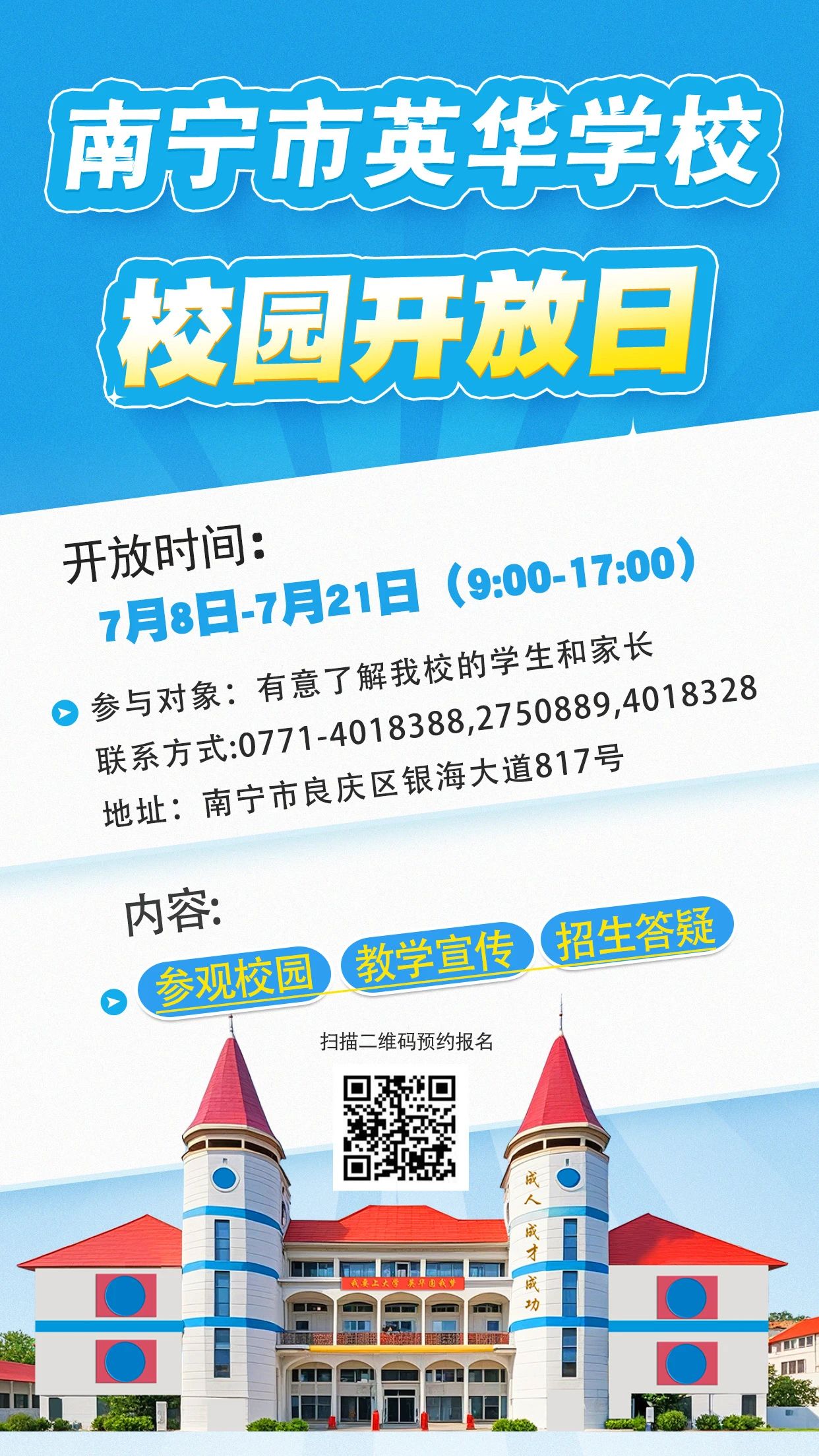 7月8日-21日,南宁市英华学校校园开放日
