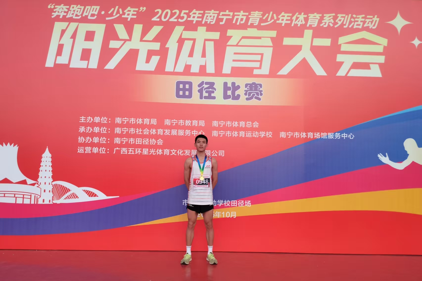 我校高二覃福运同学在“奔跑吧•少年”2025年南宁市青少年体育系列活动暨南宁市青少年阳光体育大会田径比赛中荣获: