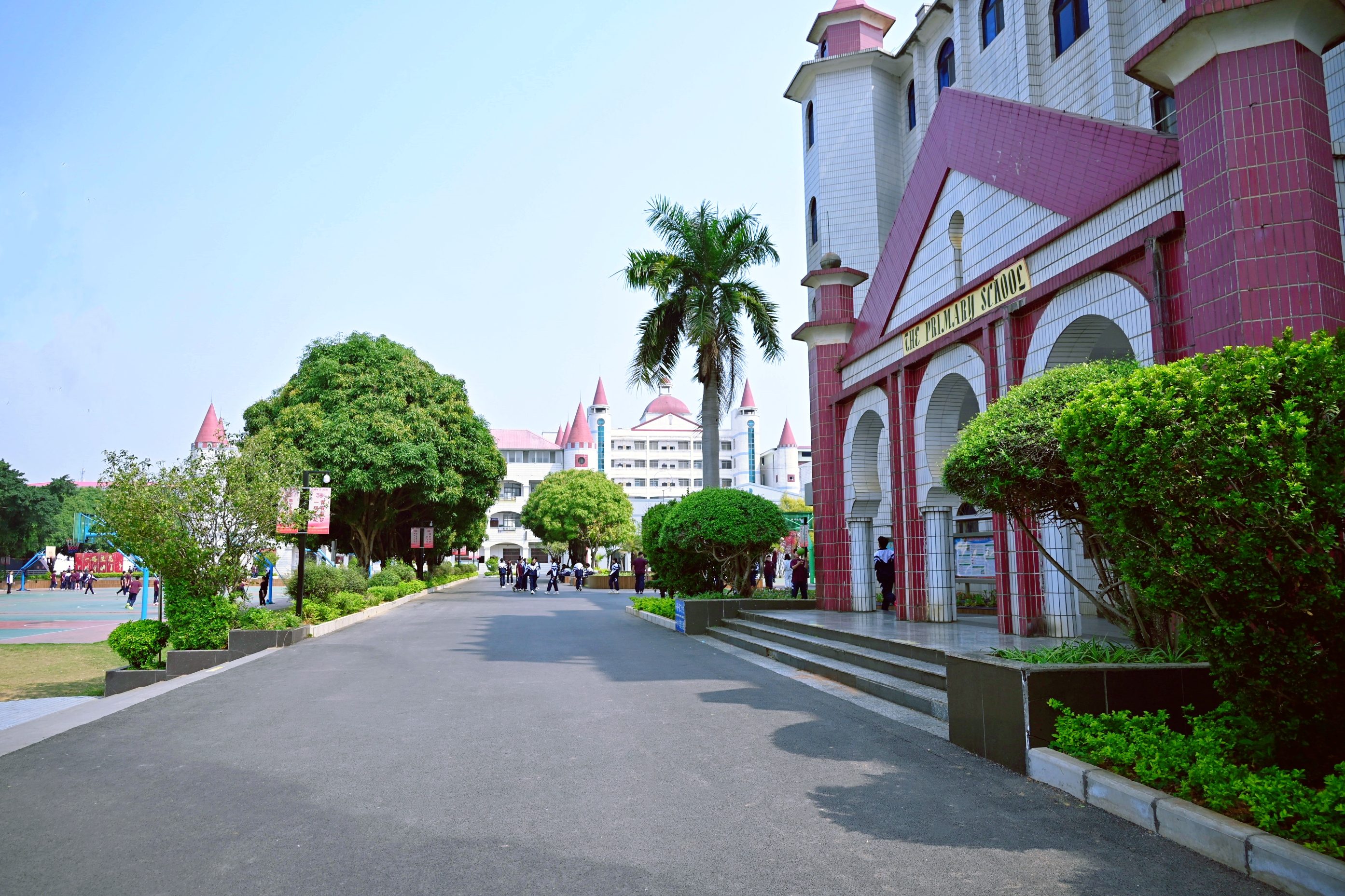 环境优雅:校园干净整洁,白墙红顶欧式建筑与四季常青绿树交相辉映,鸟语花香,校园教学区、运动区、生活区分区合理,校园文化设施丰富多彩、特色鲜明。