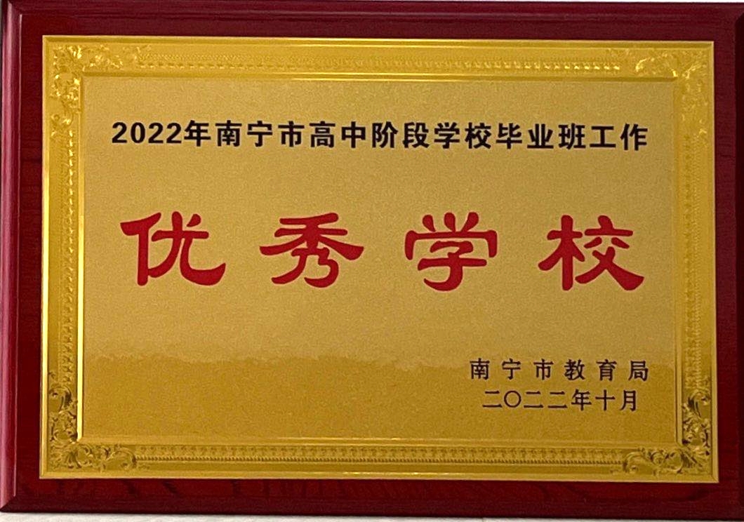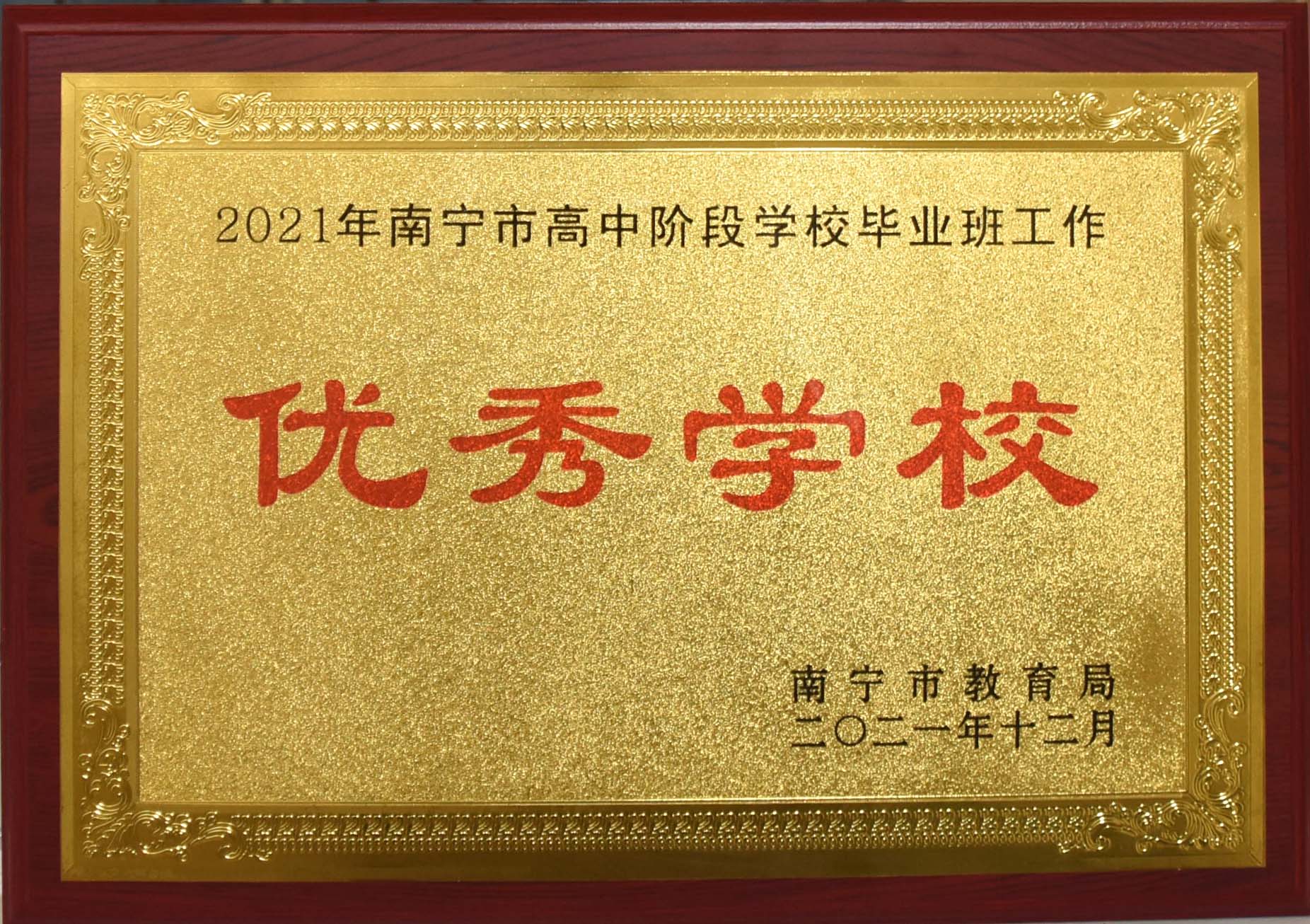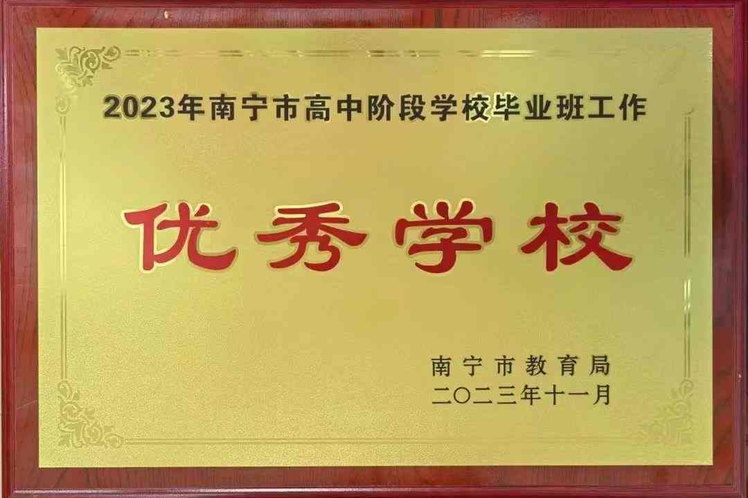 自2014年以来,学校10次获得“南宁市高中阶段学校毕业班工作成绩优秀奖”称号,并获得“南宁市高中阶段学校毕业班工作成绩特长生培养优秀奖”称号。