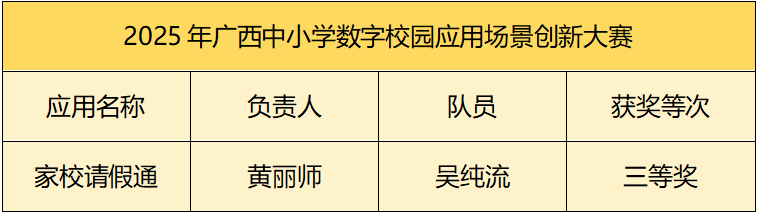 在2025年广西中小学数字校园应用场景创新大赛中,我校高中部黄丽师老师、吴纯流老师获得三等奖。