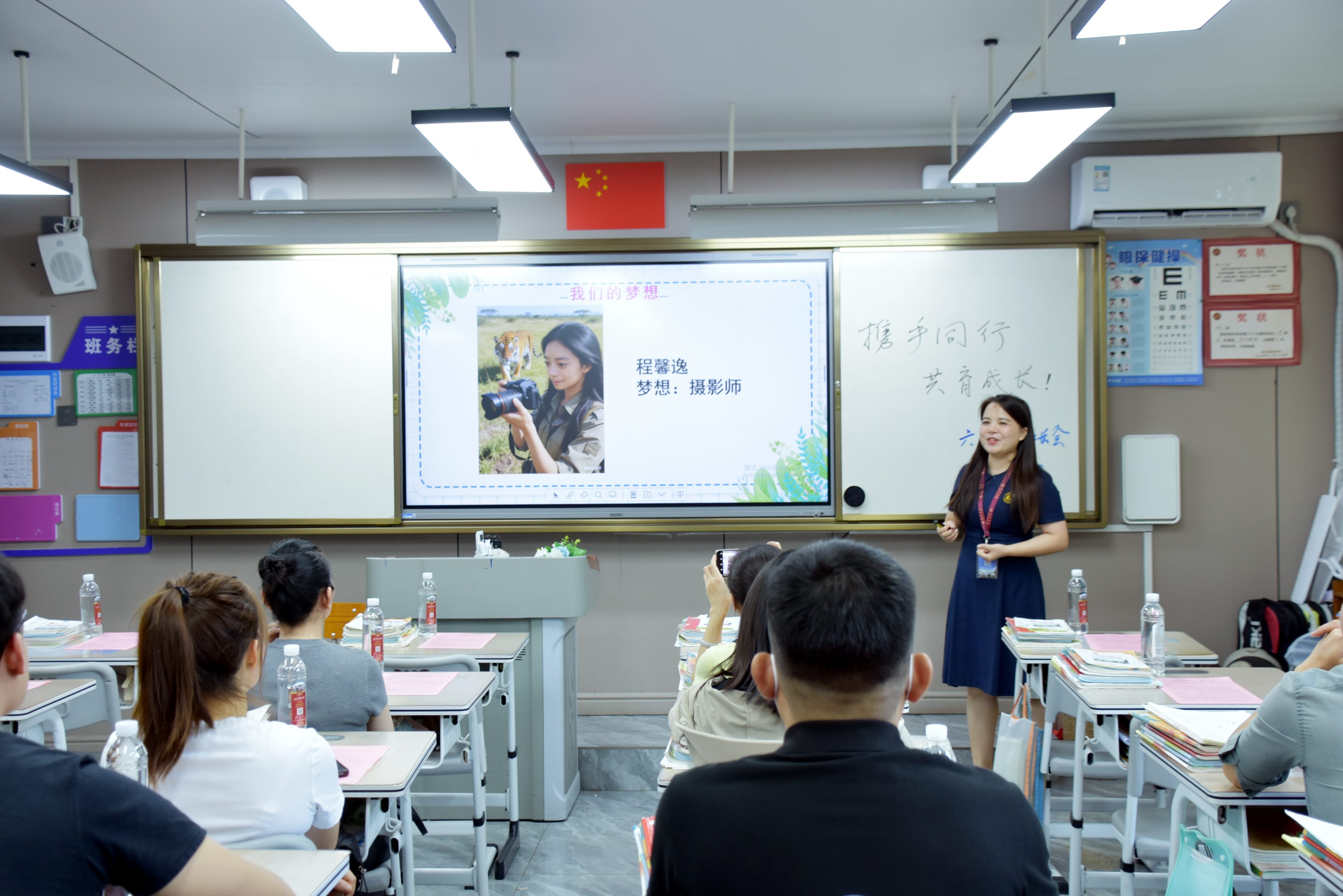 走进班级,桌面上整整齐齐摆放着孩子的语数英作业本。一笔一划、一字一句,都是成长留下的印记。班主任老师们用一张张校园日常照片,细数开学一个月来的点点滴滴:学习上的突破、生活中的小温暖、心理上的悄悄变化……每一个细节,都是老师眼里最珍贵的事。