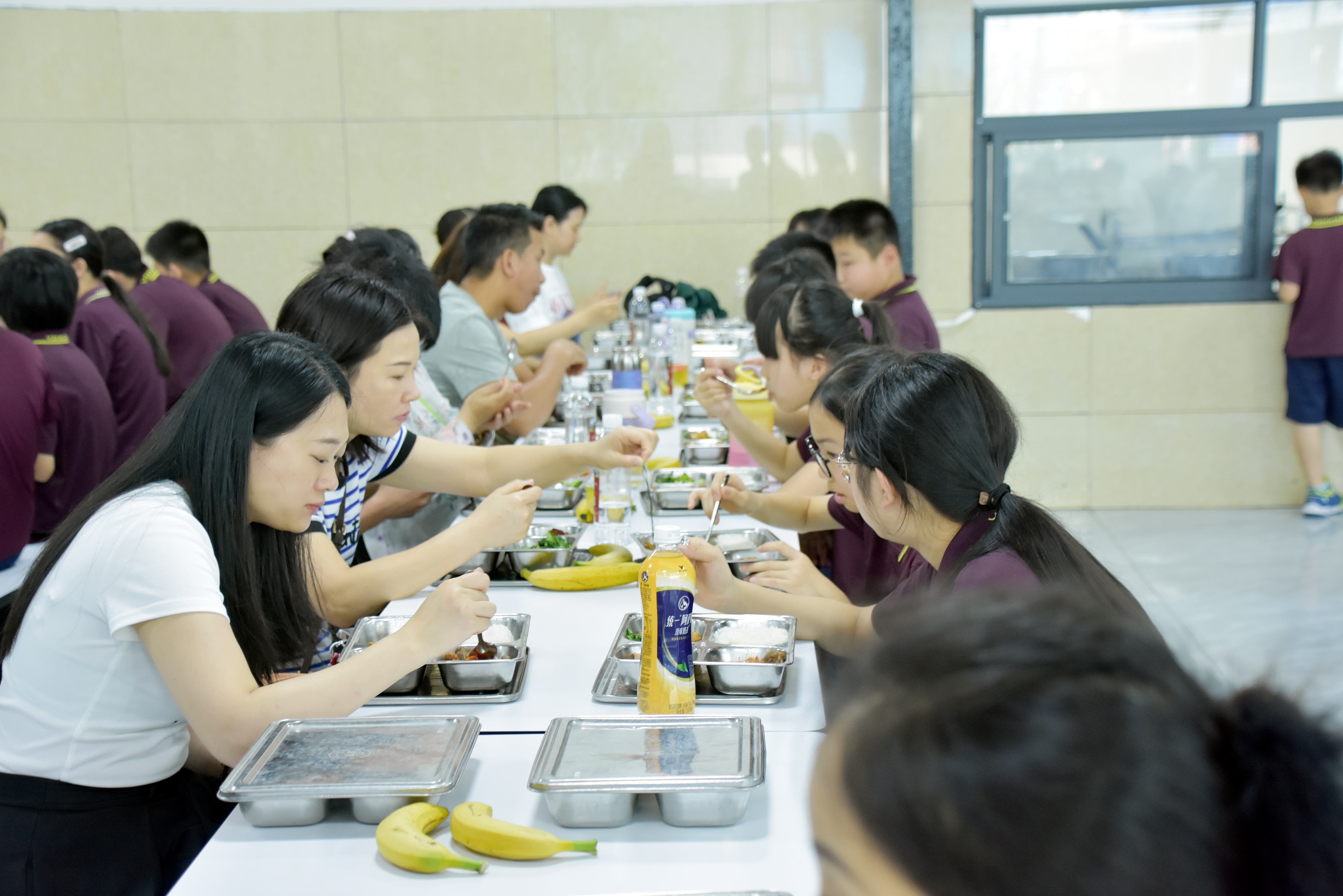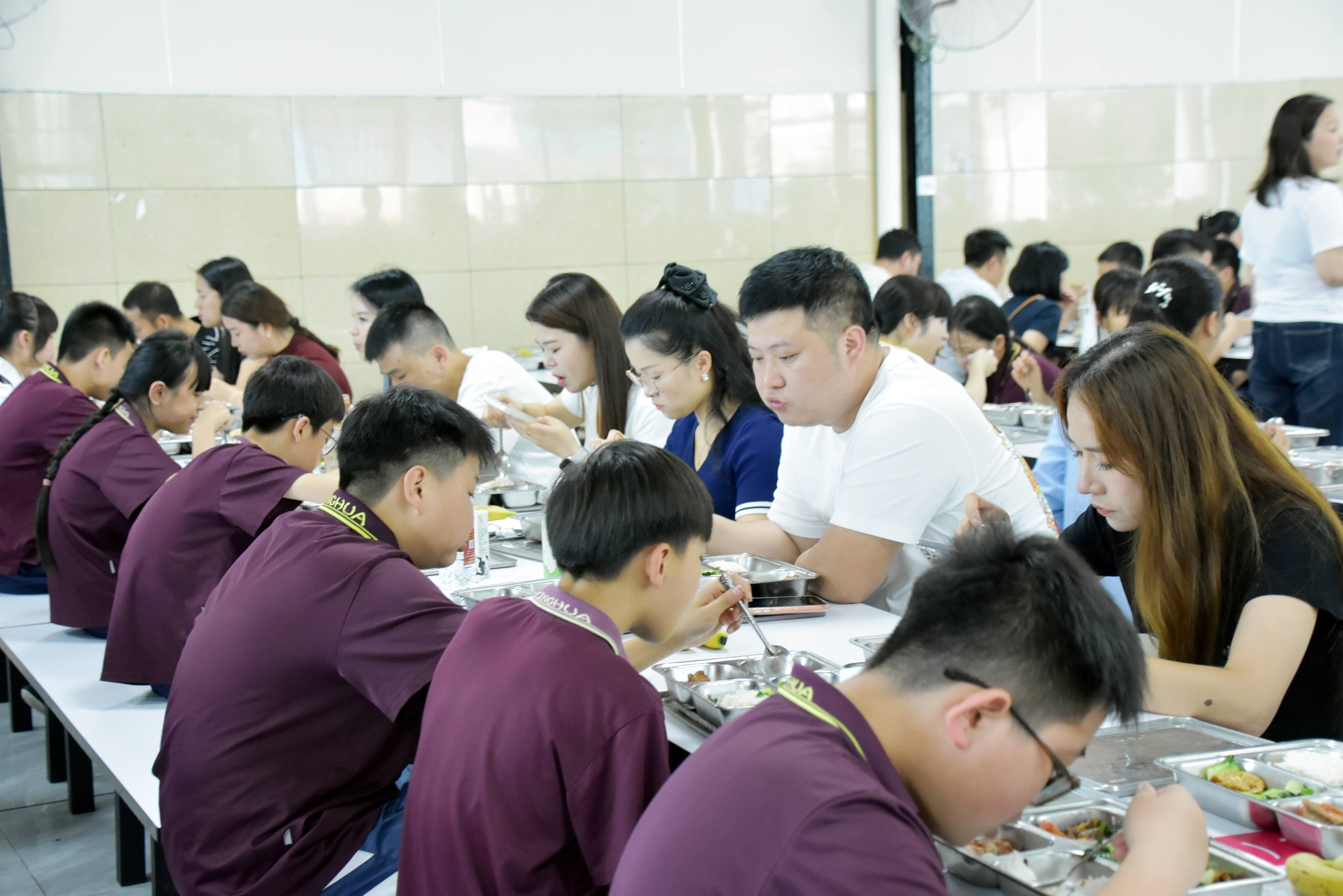 中午,家长和孩子坐在一起,在学校饭堂共进午餐。没有什么比看着孩子大口吃饭更让人安心的了。说说笑笑间,平时来不及说的话,都化成了碗里的热汤和眼里的光。