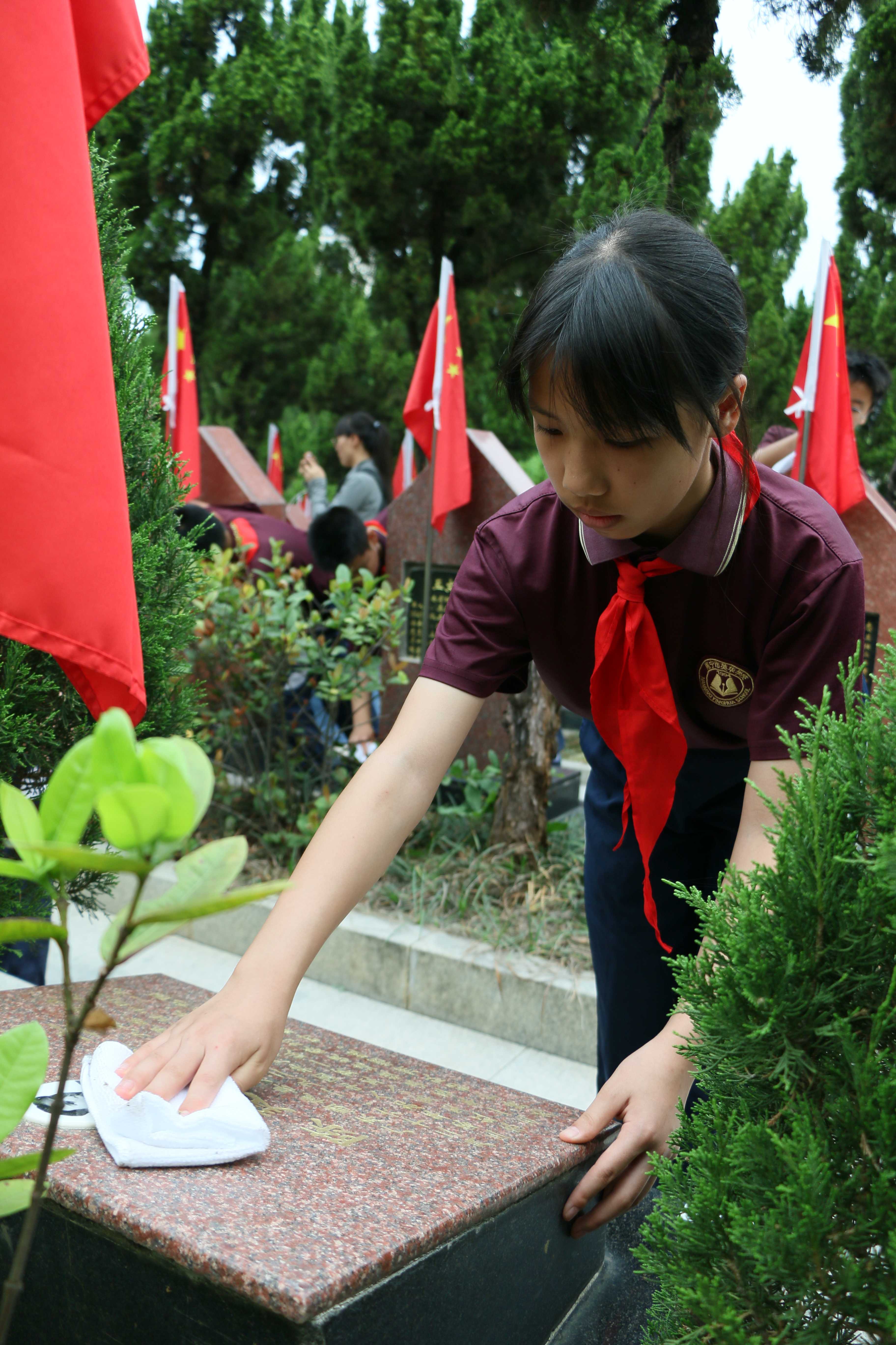 擦拭墓碑,寄语追思