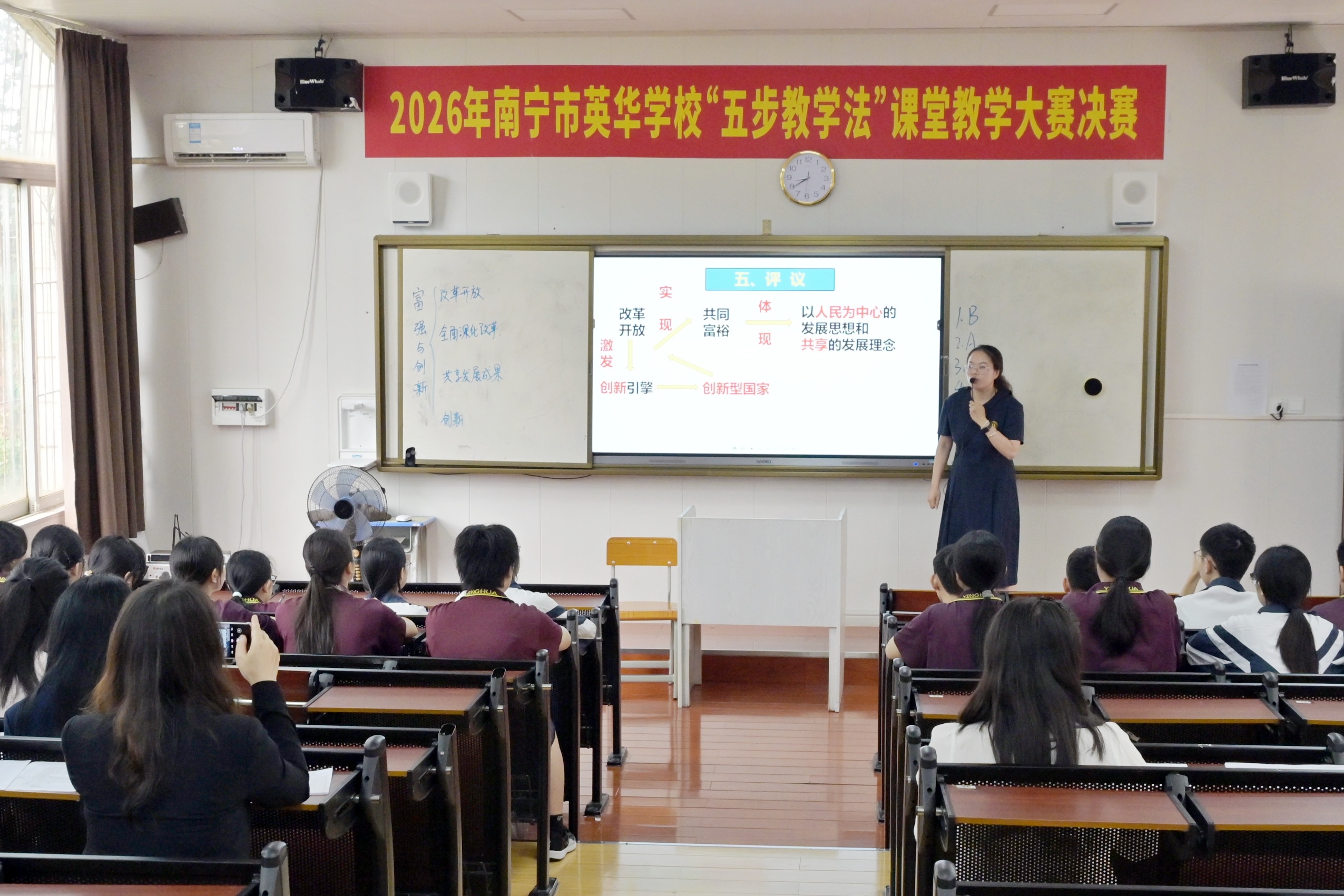 4月23日—24日,我校九义部“五步教学法”课堂教学大赛决赛在阶梯教室火热开赛。文科、理科共11位教师同台竞技,围绕 “立标、自学、练习、解疑、评议” 五步流程,呈现了一堂堂生动高效的优质课。