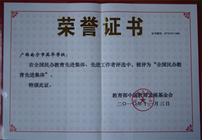 为了贯彻落实《国家中长期教育改革和发展规划纲要》精神,探索“大力支持民办教育”健康发展的办法和途径,激励广大民办教育工作者为发展民办教育事业作出新的贡献,中国教师发展基金会于2010年4月16日发出了《关于表彰民办教育先进集体和先进工作者的通知》(教发基[2010]3号),组织进行全国民办教育先进集体和先进工作者的评选活动,2010年10月,本次活动评审工作经结束, 我校位列“全国民办教育先进集体”之列。11月4、5日中国教师发展基金会在北京星光梅地亚酒店召开全国民办教育表彰大会,表彰被评为全国民办教育先进集体和全国民办教育先进工作者的集体及个人,董事长李聪先生作为英华学校的举办人亲自走上领奖台,接过了全国民办教育先进集体奖牌。