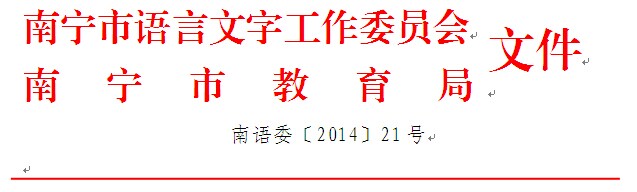 为贯彻落实《广西壮族自治区贯彻〈国家中长期语言文字事业改革和发展规划纲要(2012—2020年)〉实施意见》和《南宁市贯彻〈国家中长期语言文字事业改革和发展规划纲要(2012—2020年)〉实施方案》,2014年我市开展南宁市语言文字规范化示范校评选活动。通过组织初审和实地评估,并经审核,决定授予横县横州镇中心学校(本校)等23所学校(幼儿园)(名单附后)“南宁市语言文字规范化示范校”称号。现将名单公布如下: