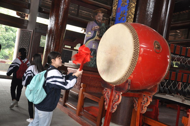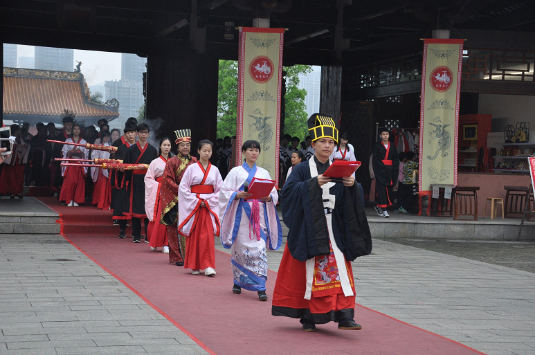 全体师生在司仪、礼生的引领下,按着净手、游泮、习礼等,完成所有祭孔礼仪程序后,誓师大会正式开始。