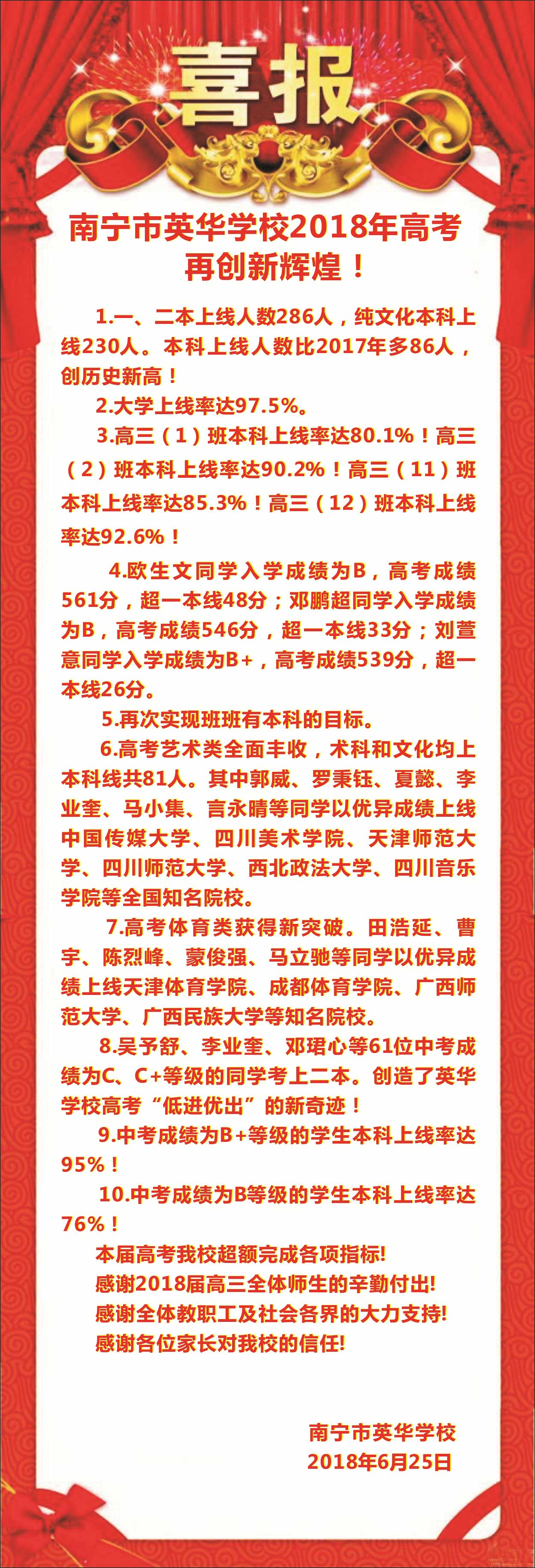 喜报!英华学校高考再创新辉煌!