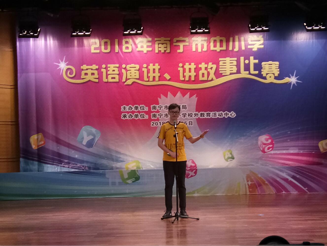 我校高二(11)班兰添同学参加2018年南宁市中小学英语演讲比赛,经过激烈角逐,获高中组二等奖,指导教师:刘璐、林丽。