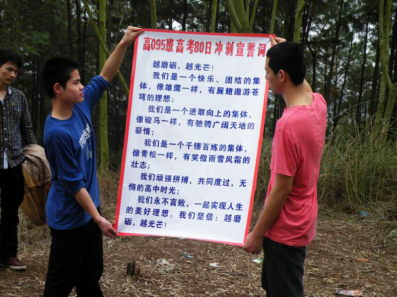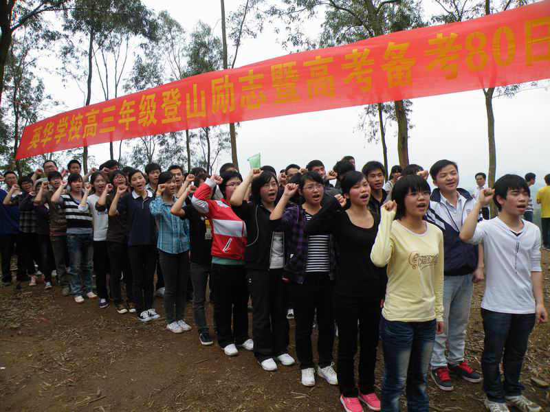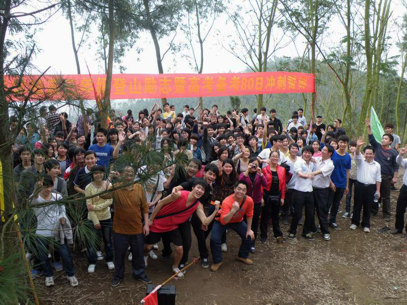 3月17日下午,我校高三年级举行“登山励志暨高考备考80日冲刺誓师”活动。高三全体师生14:40有序出发,直登五象岭山顶,在山顶上,年级组长潘嘉智宣布登山优胜小组名单并为他们颁奖;李维屏副校长在讲话中鼓励同学们:高考八十天冲刺,是你们人生最关键的一步,是雄鹰就要搏击长空,是海燕就要翱翔风雨,是热血儿女就要拼搏高考。摈弃浮躁、厌学情绪,竭尽全力,考上理想大学,为父母、老师和学校争光。接着各班级同学用誓言表达了共同的心声:不随波逐流,不逃避困难,不负父母期盼,不负恩师厚望,卧薪尝胆,成就梦想。最后高三全体教师向同学们宣誓承诺:精诚团结,脚踏实地,与同学们同甘共苦,为同学们保驾护航,决战高考,创造辉煌。