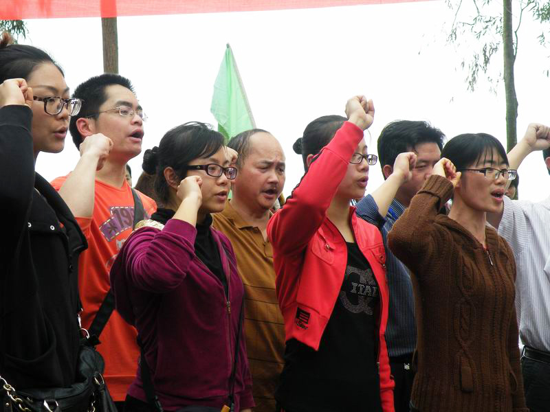 誓师活动在响彻山谷的宣誓声中胜利结束。